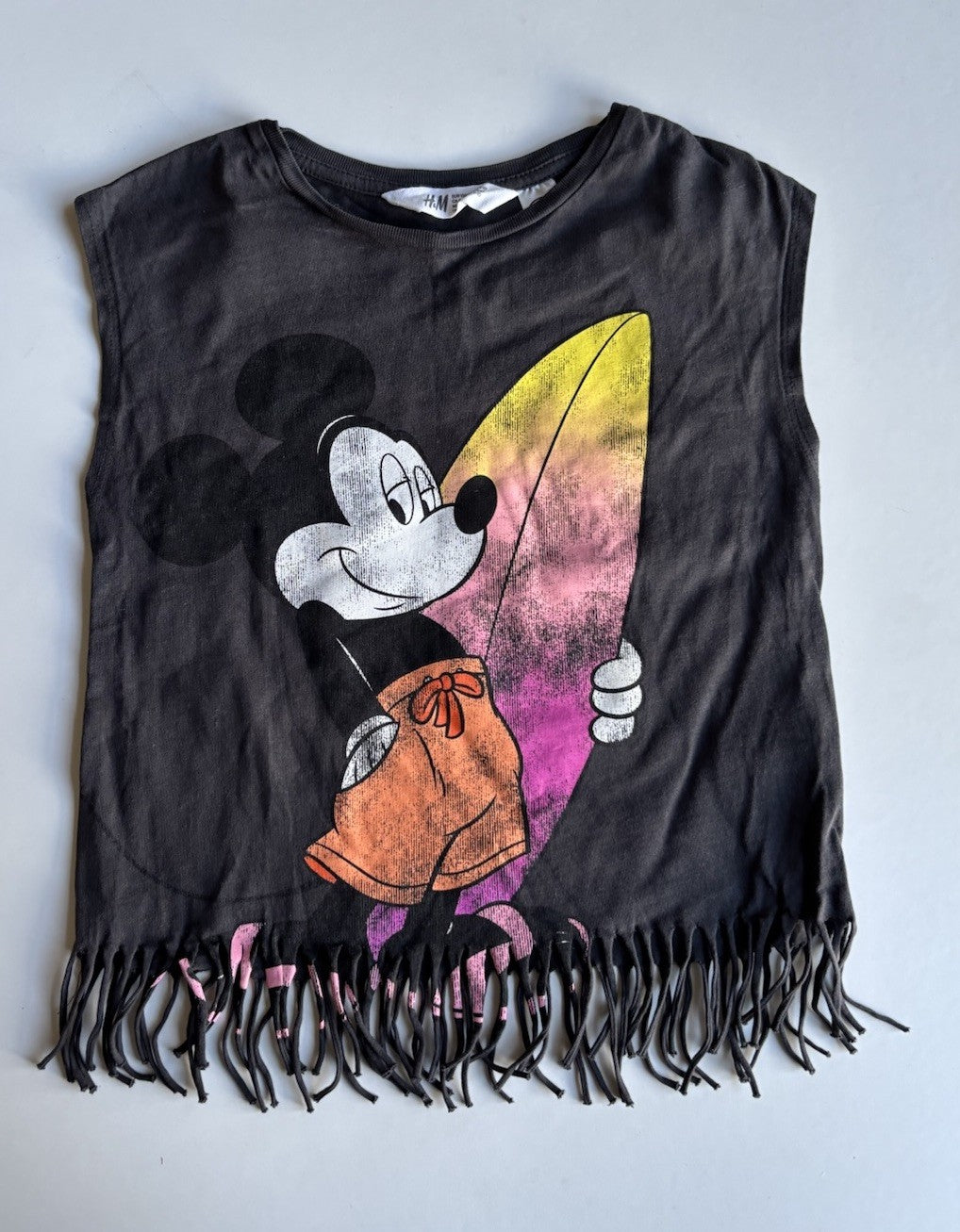 H&M x Disney kids girls size 9-10 grey sleeveless Mickey Mouse top, VG