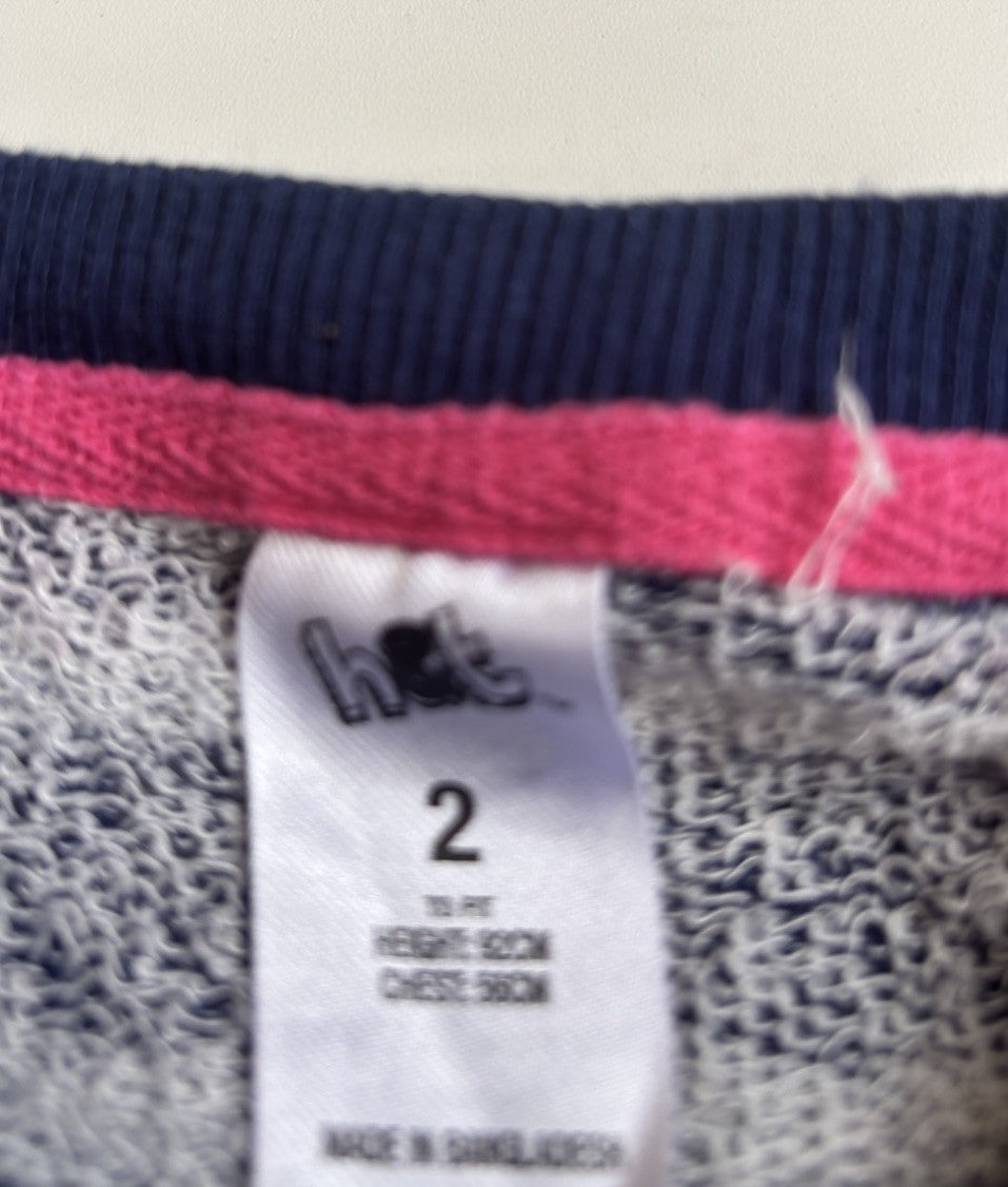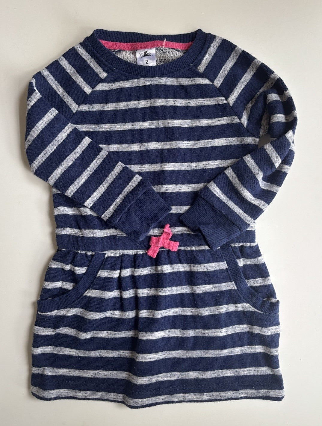H&T kids girls toddler size 2 blue grey stripe jumper dress, VGUC