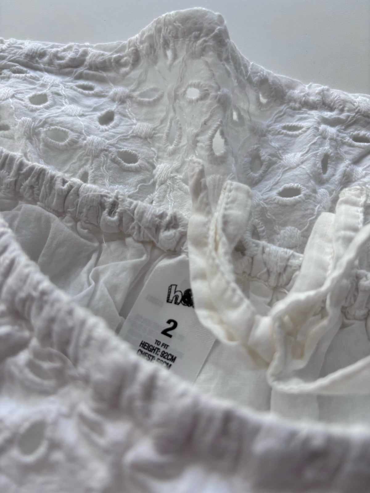 H&T kids girls toddler size 2 white lace one shoulder dress, VGUC
