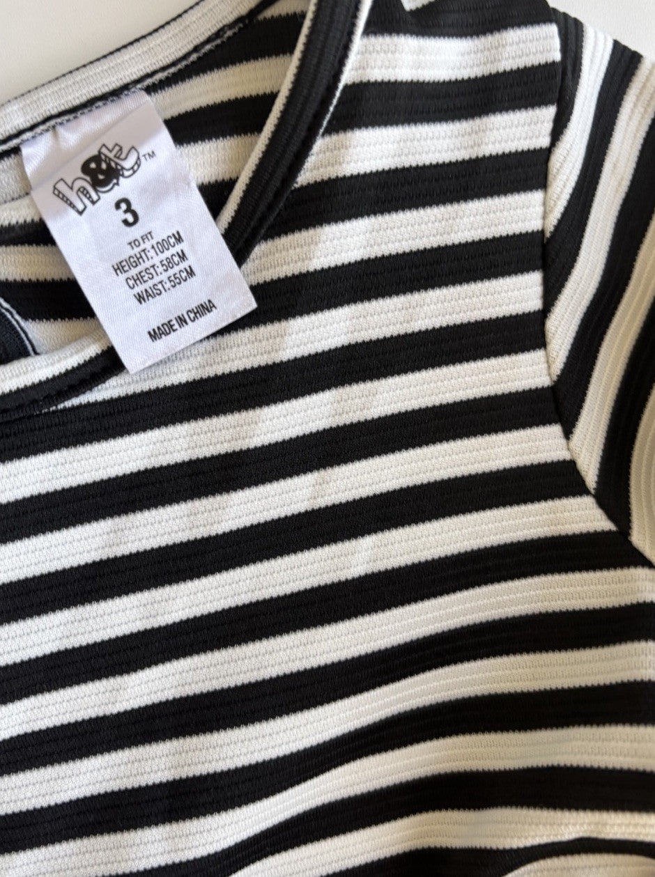 H&T kids girls toddler size 3 black white stripe long sleeve dress, VGUC