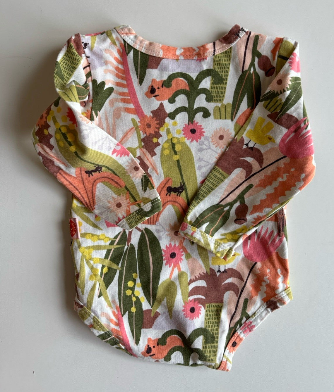 Halcyon Nights baby girl size 3-6 months pink floral fauna bodysuit, V
