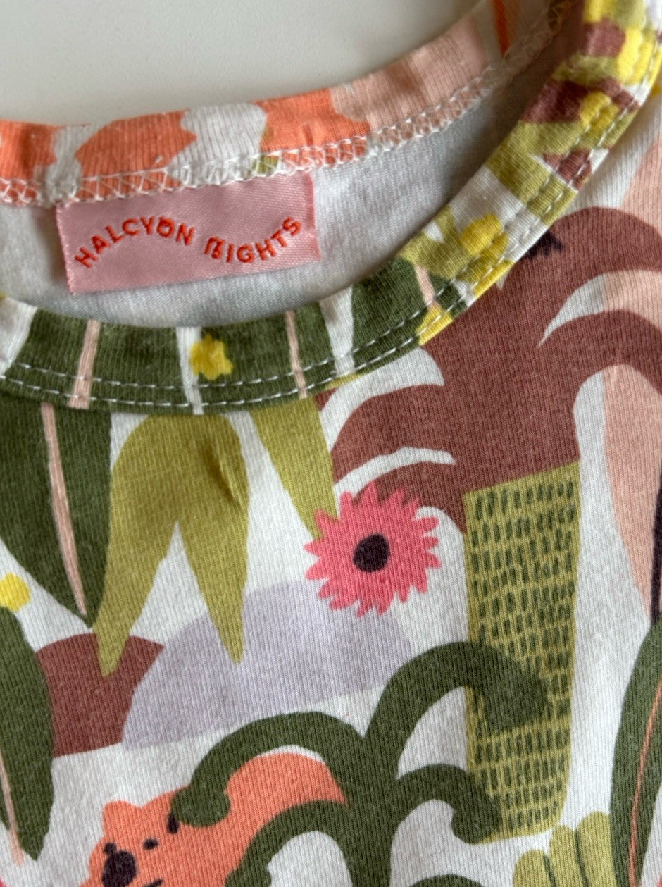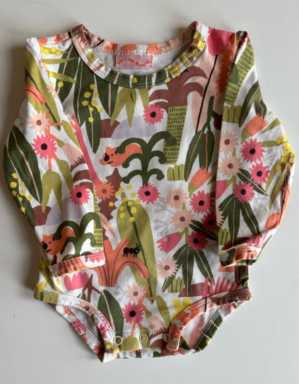 Halcyon Nights baby girl size 3-6 months pink floral fauna bodysuit, VGUC