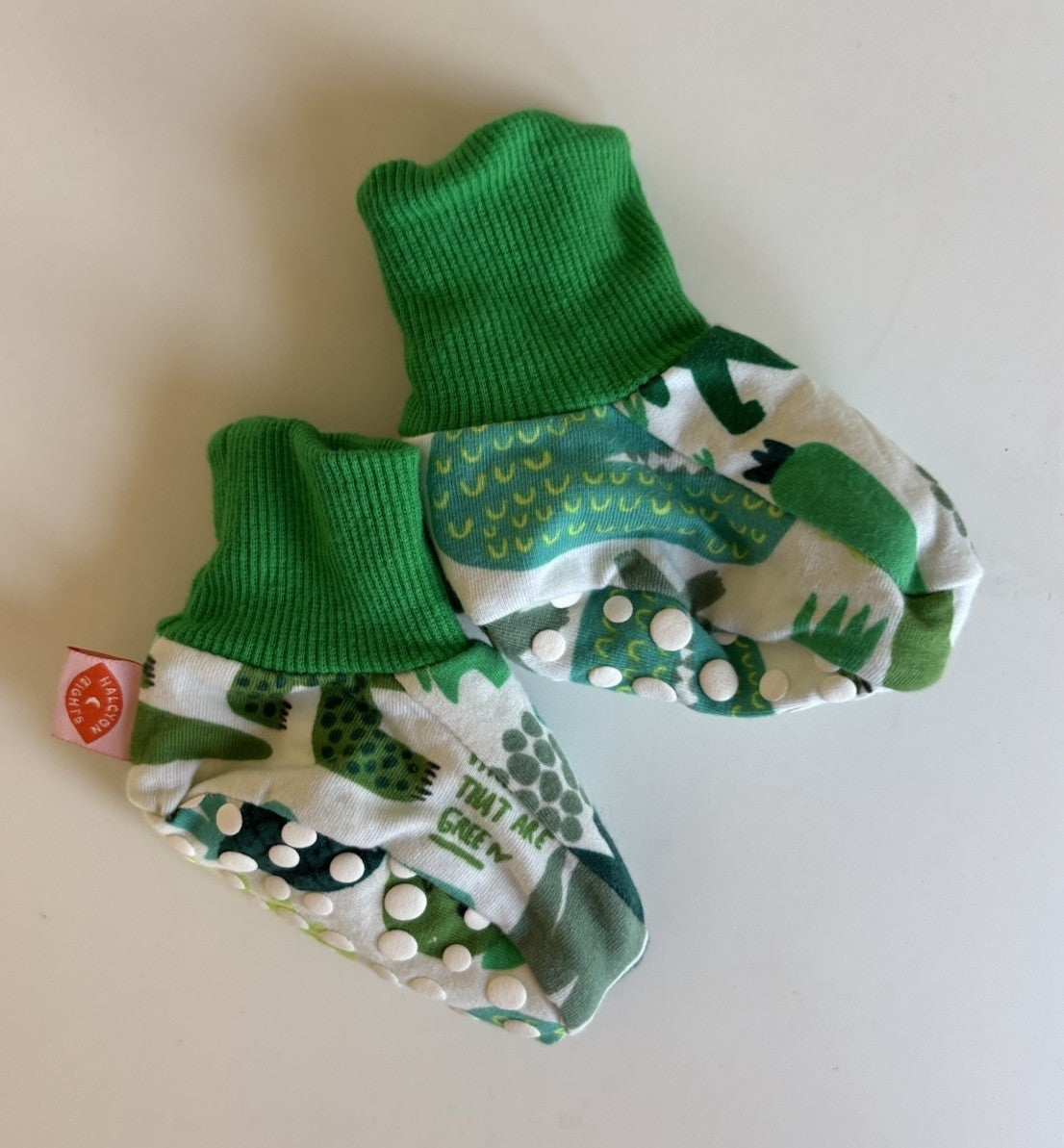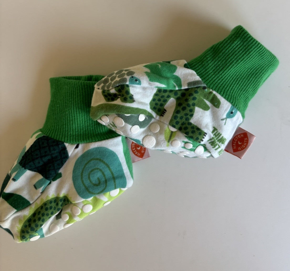 Halcyon Nights baby size 0-3 months green white animals booties shoes,