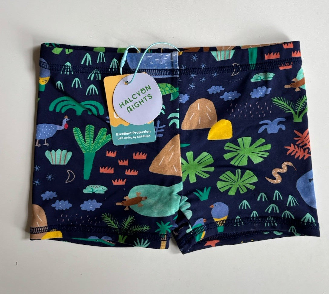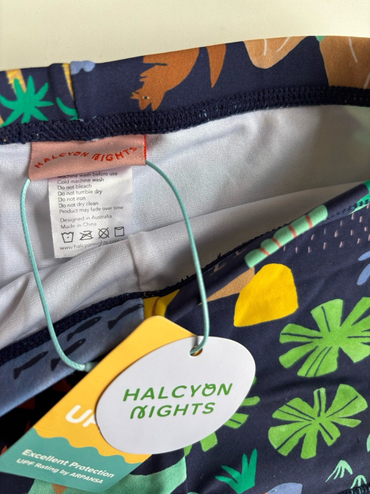 Halcyon Nights kids boys toddler size 4 navy blue animals trees bathers, BNWT