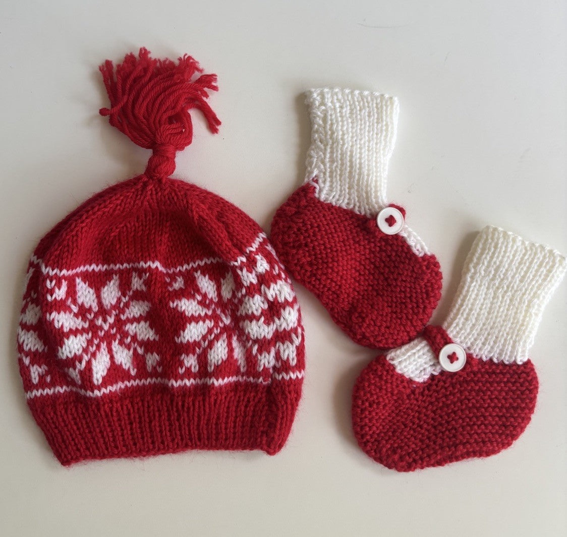 Handmade baby size approx. 0-3 months red beanie booties set, VGUC
