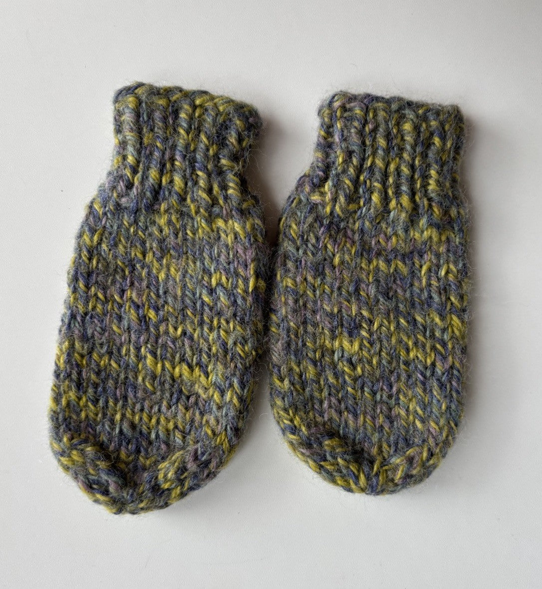 Handmade baby size approx. 1-2 multicoloured knitted mittens, VGUC