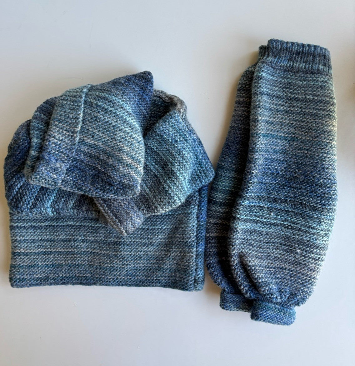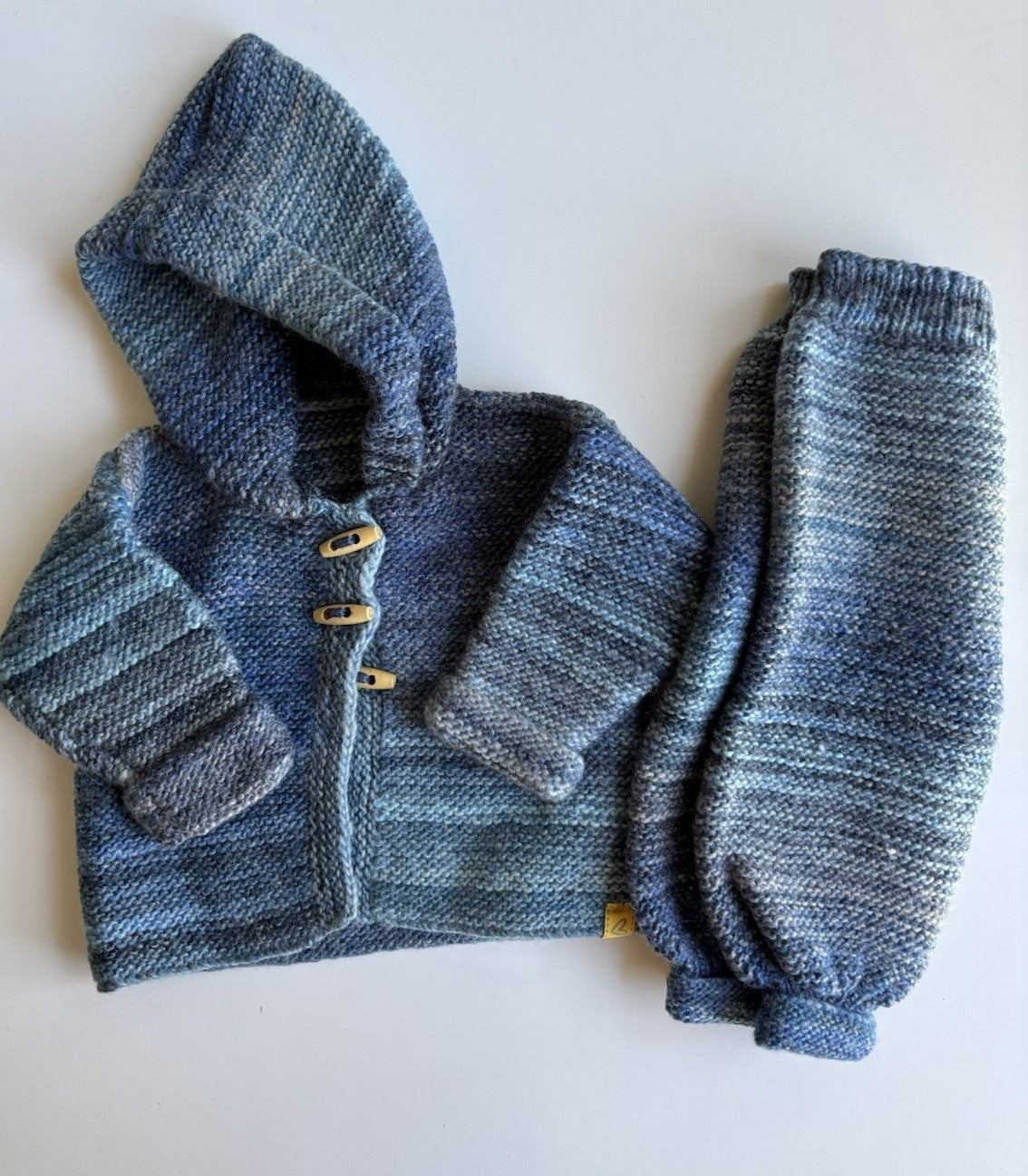 Handmade baby size approx. 3-6 months blue knit pants duffle jumper, VGUC