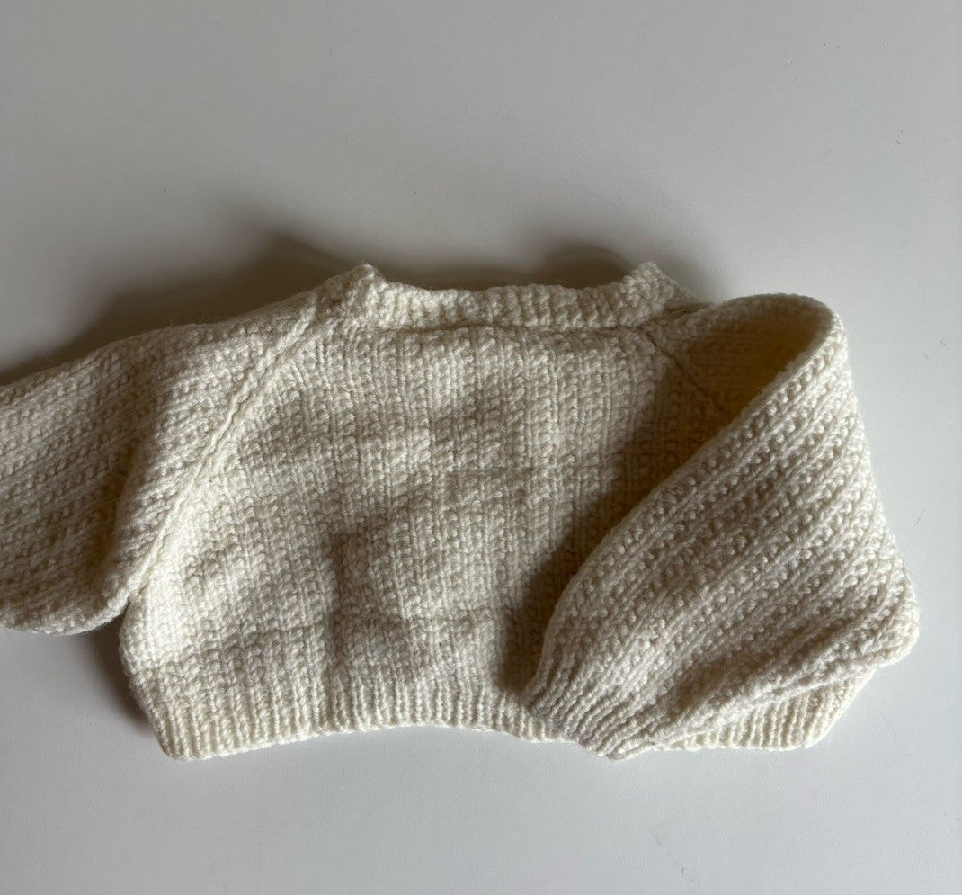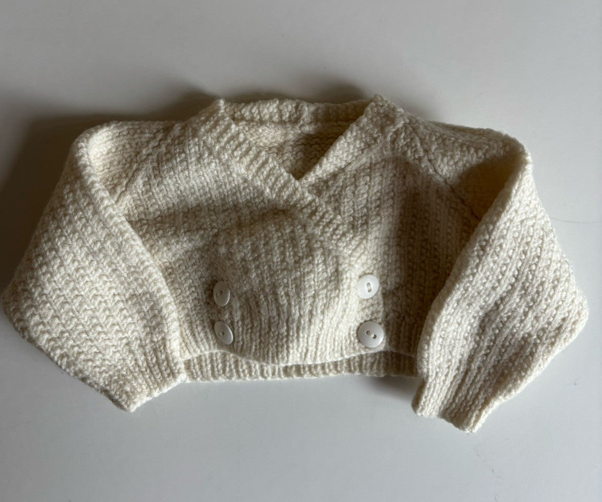 Handmade baby size approx. newborn white bolero knit cardigan, VGUC