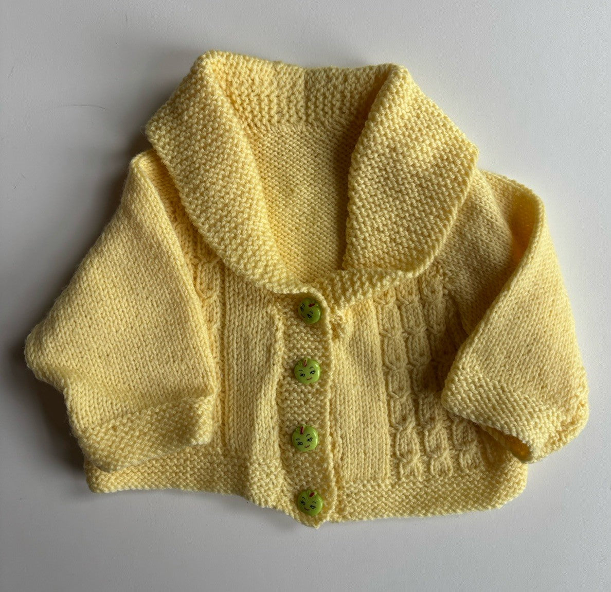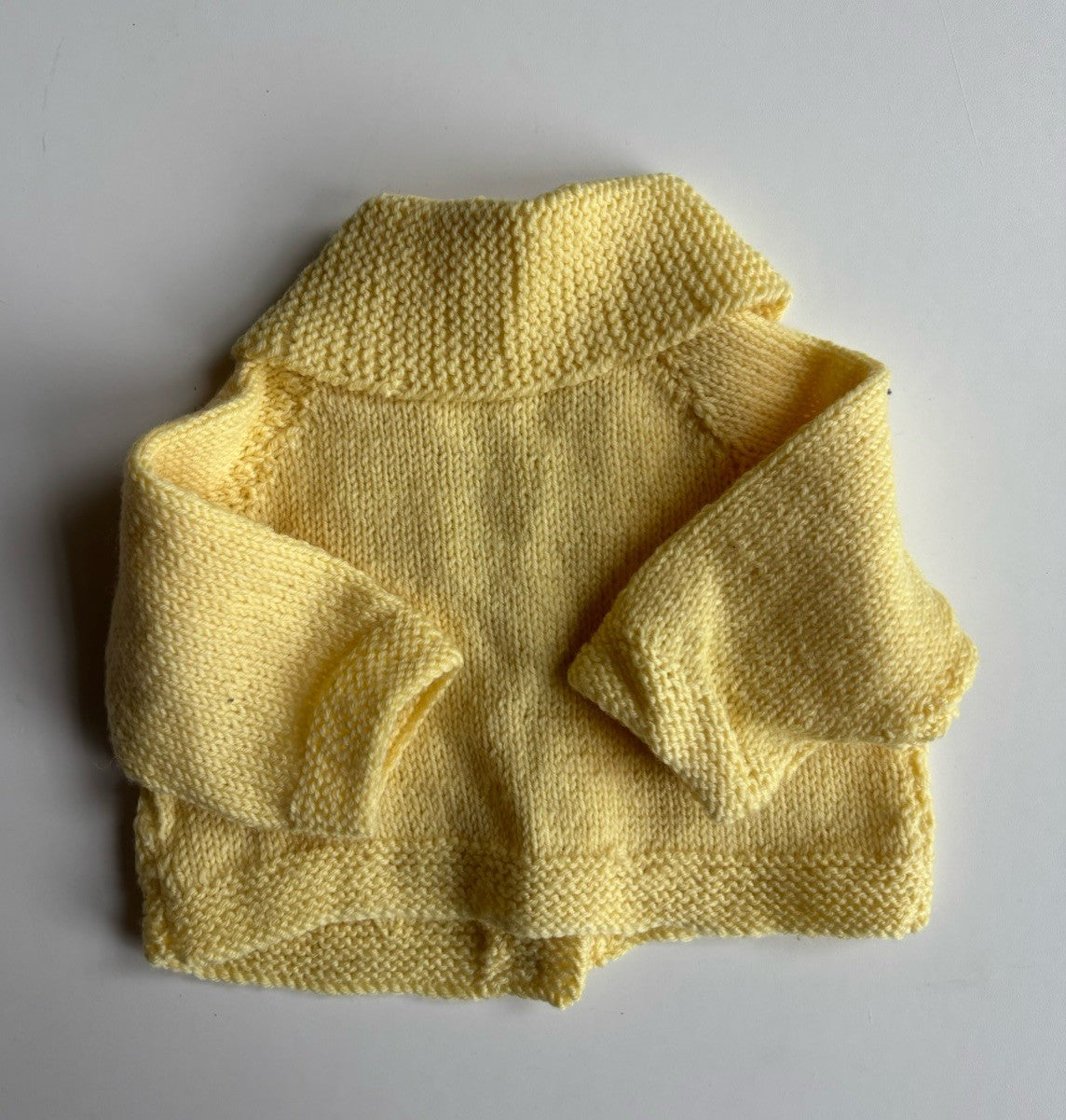 Handmade baby size approx. newborn yellow knitted cardigan VGUC