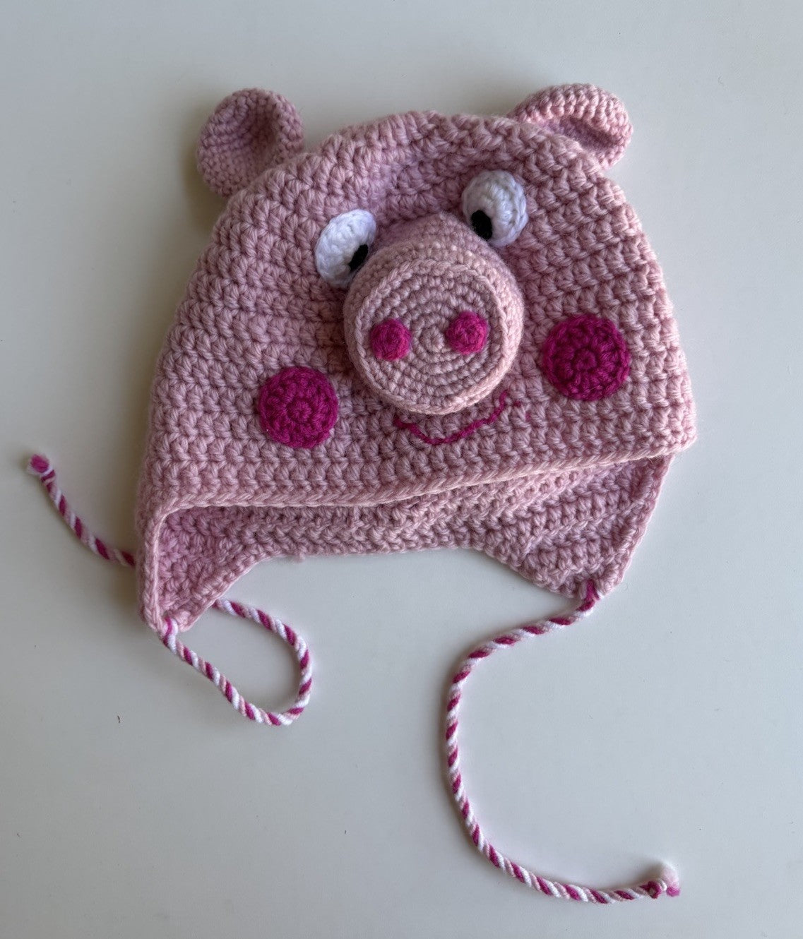 Handmade kids size approx. 1-2 years pink knitted pig beanie hat, VGUC