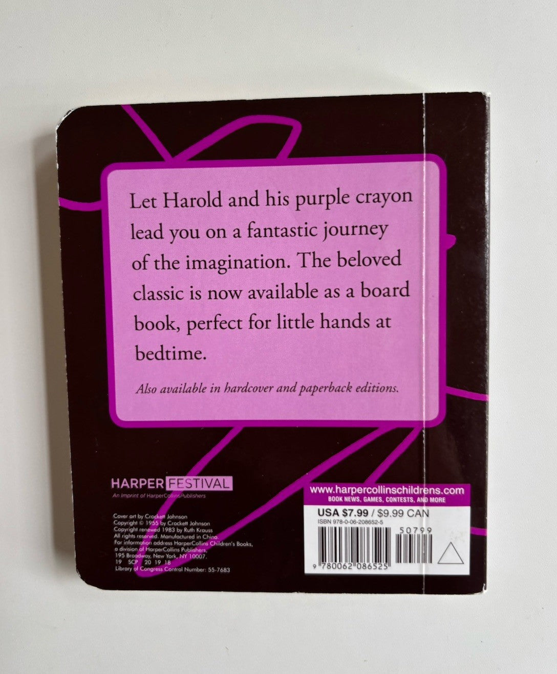 Harold and the Purple Crayon by Crockett Johnson kids board book, VGUC