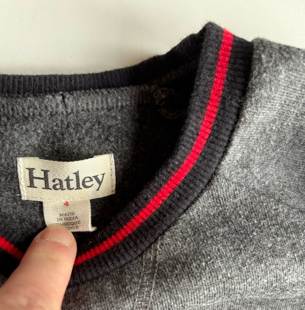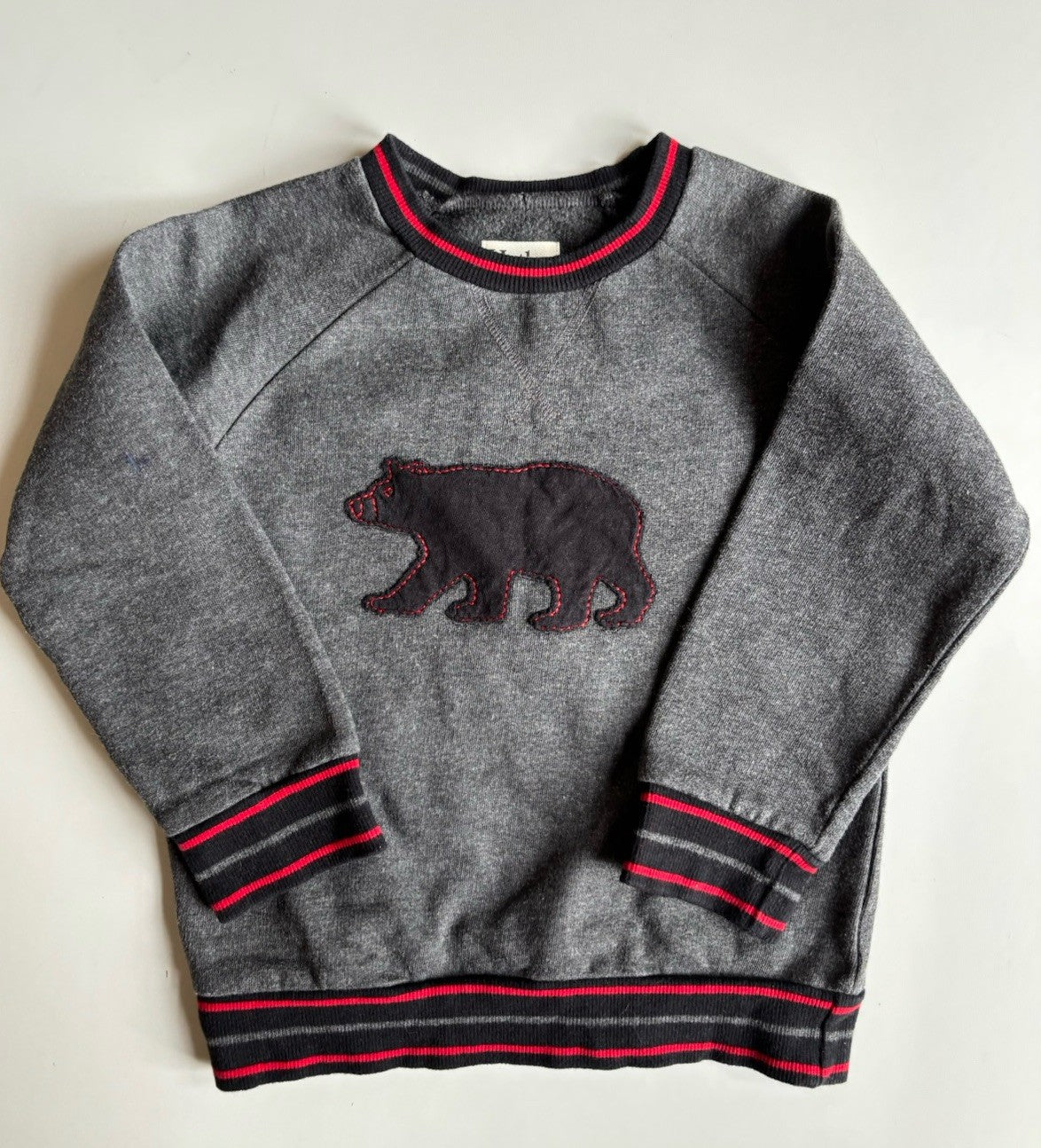 Hatley kids size 4 grey pullover jumper bear, VGUC
