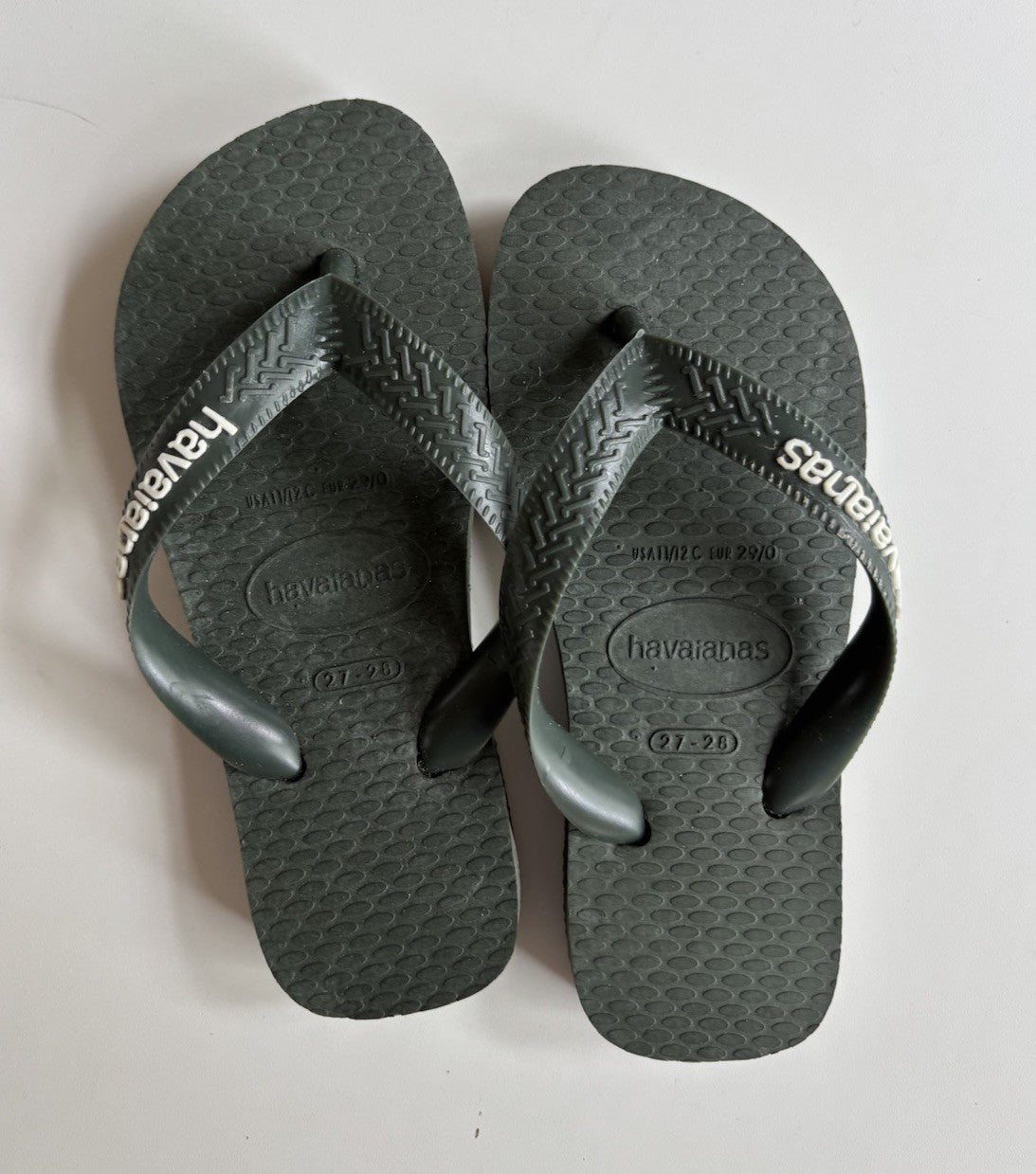 Havaianas kids size US 11/12 EUR 29/30 green thongs flip flops, EUC