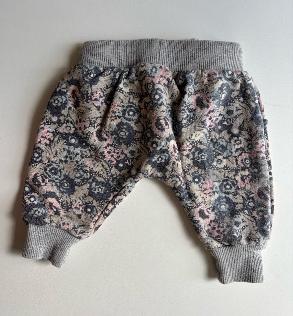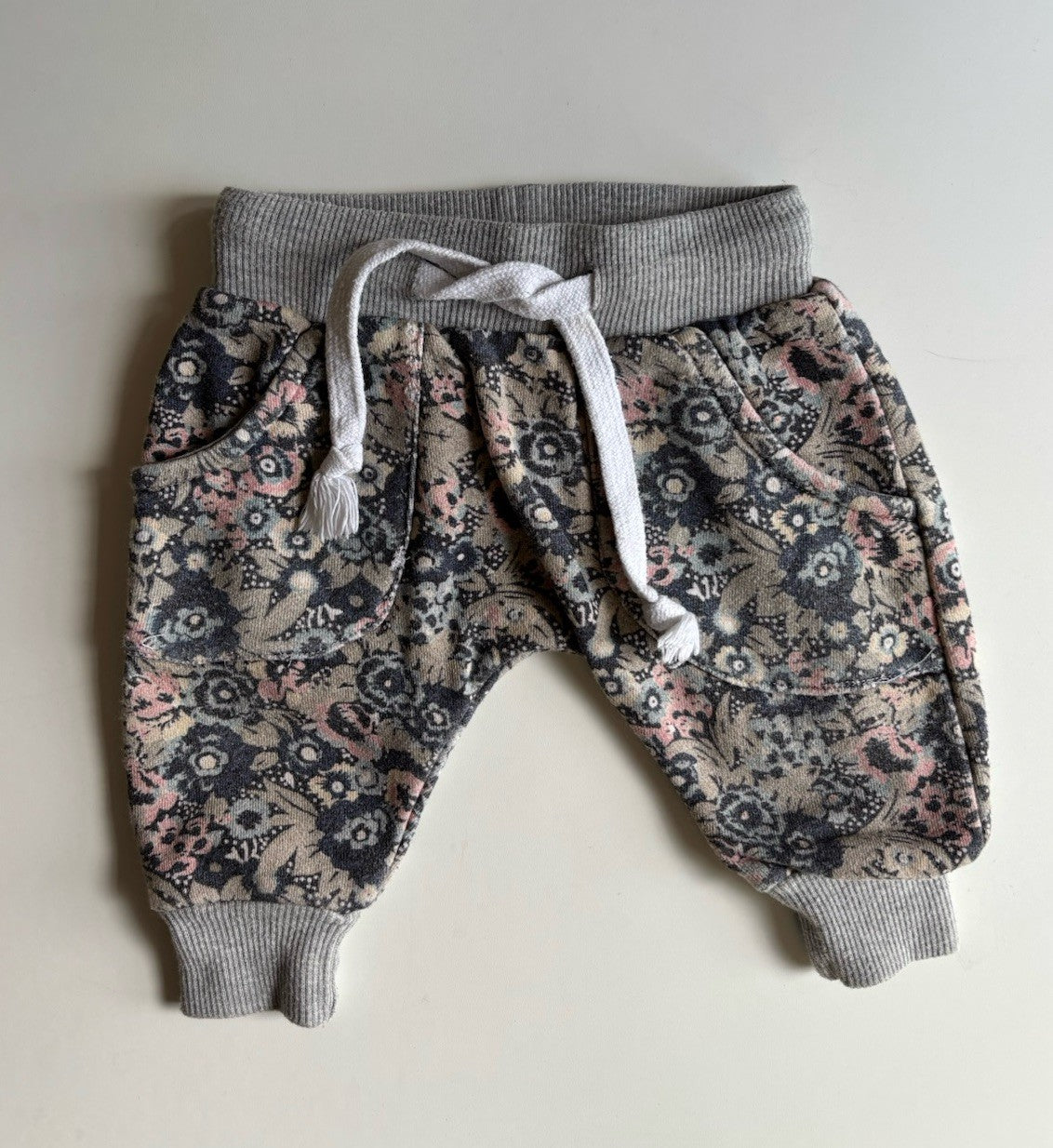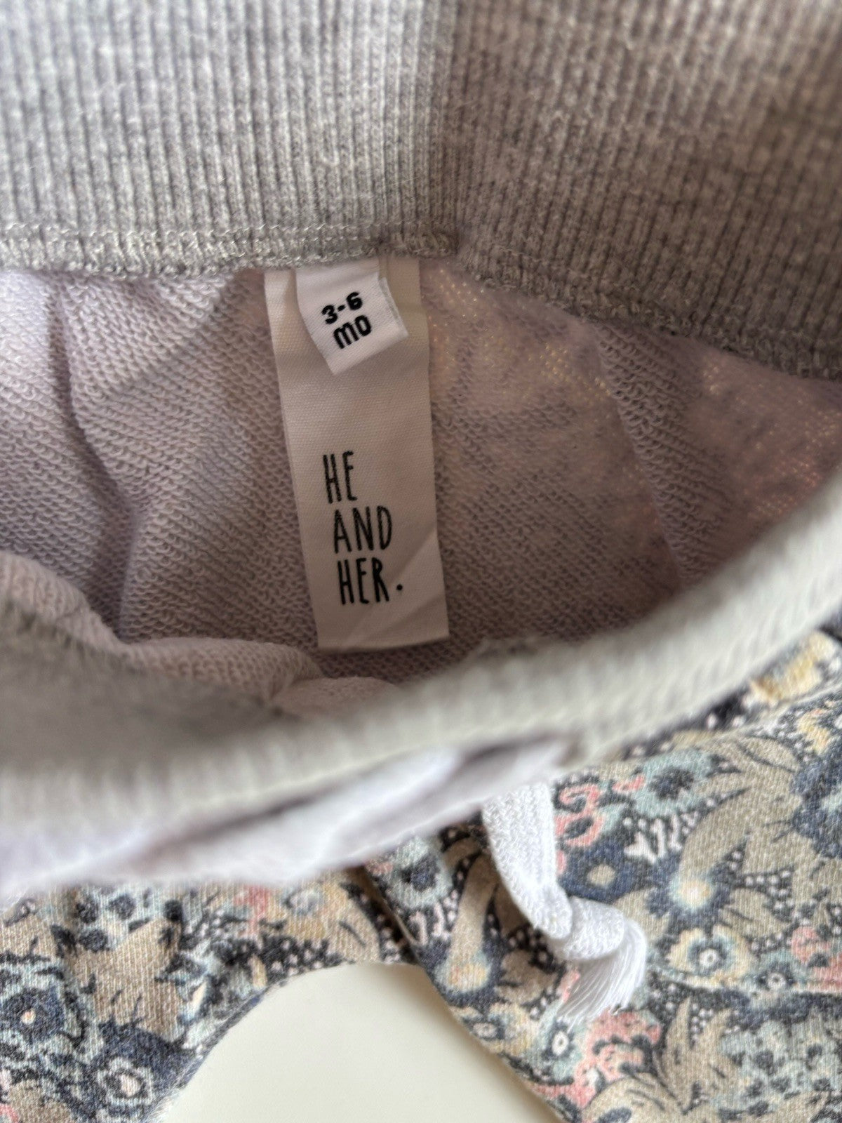 He and Her baby girl size 3-6 months grey floral track pants, VGUC
