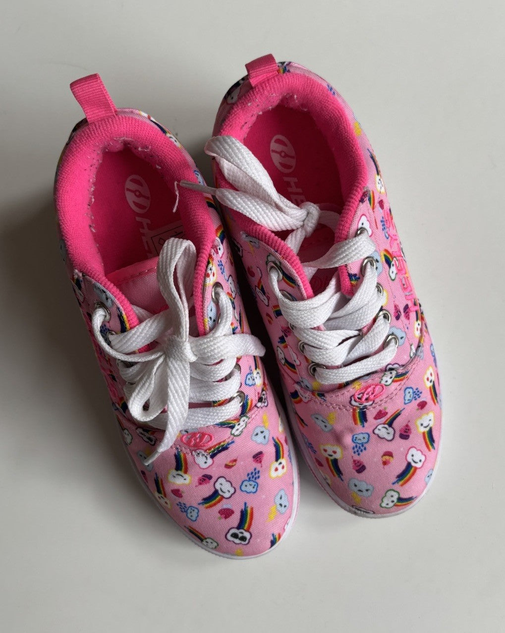 Heelys kids girls size US 2/EUR 33 pink clouds lace up sneakers wheels