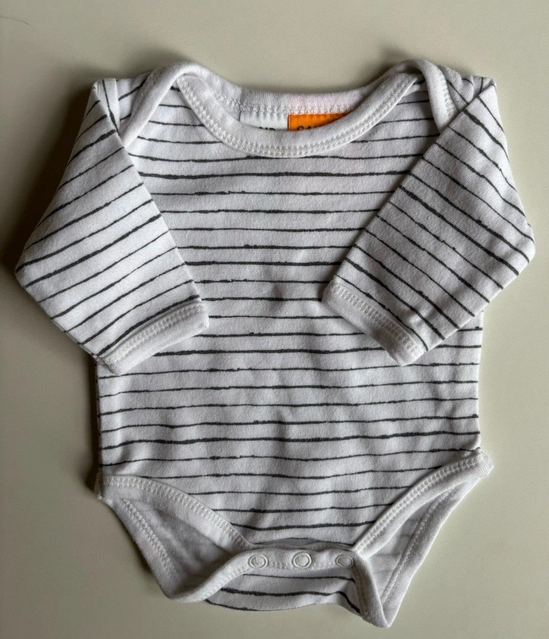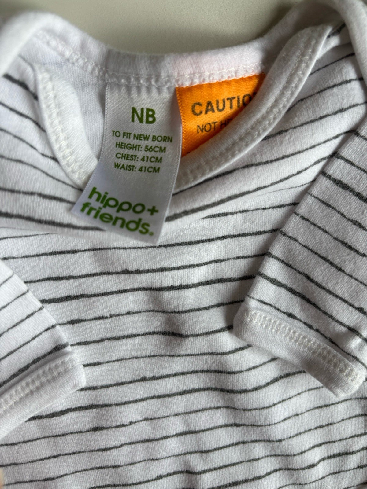 Hippo + Friends baby size newborn grey stripe bodysuit top, VGUC