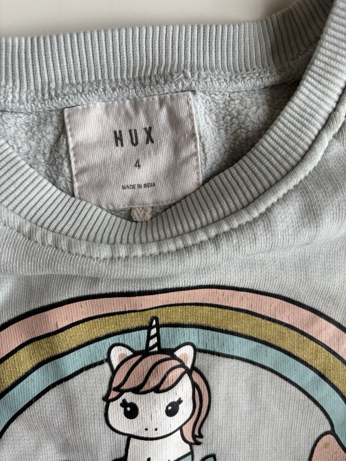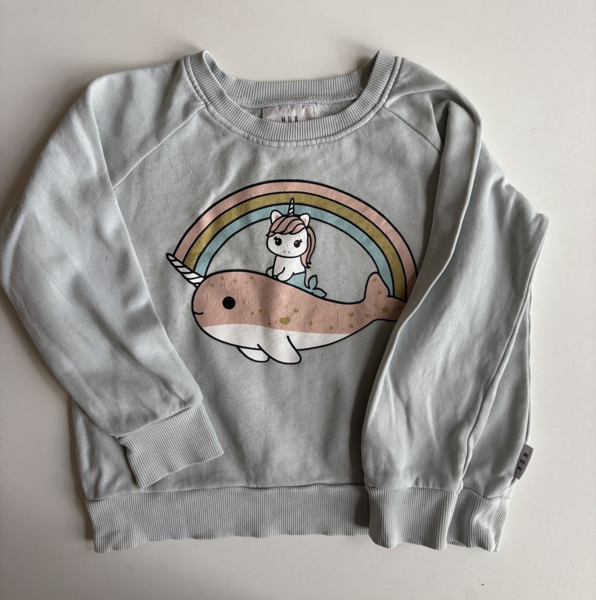 Hux kids girls size 4 blue pullover jumper unicorn narwhal rainbow, GU