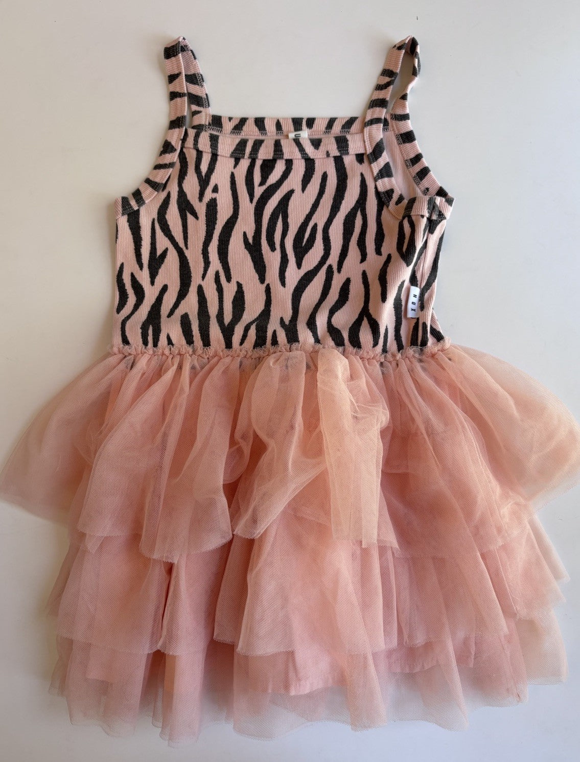 Hux Kids girls size 7 pink black patterned tiered tutu dress, VGUC