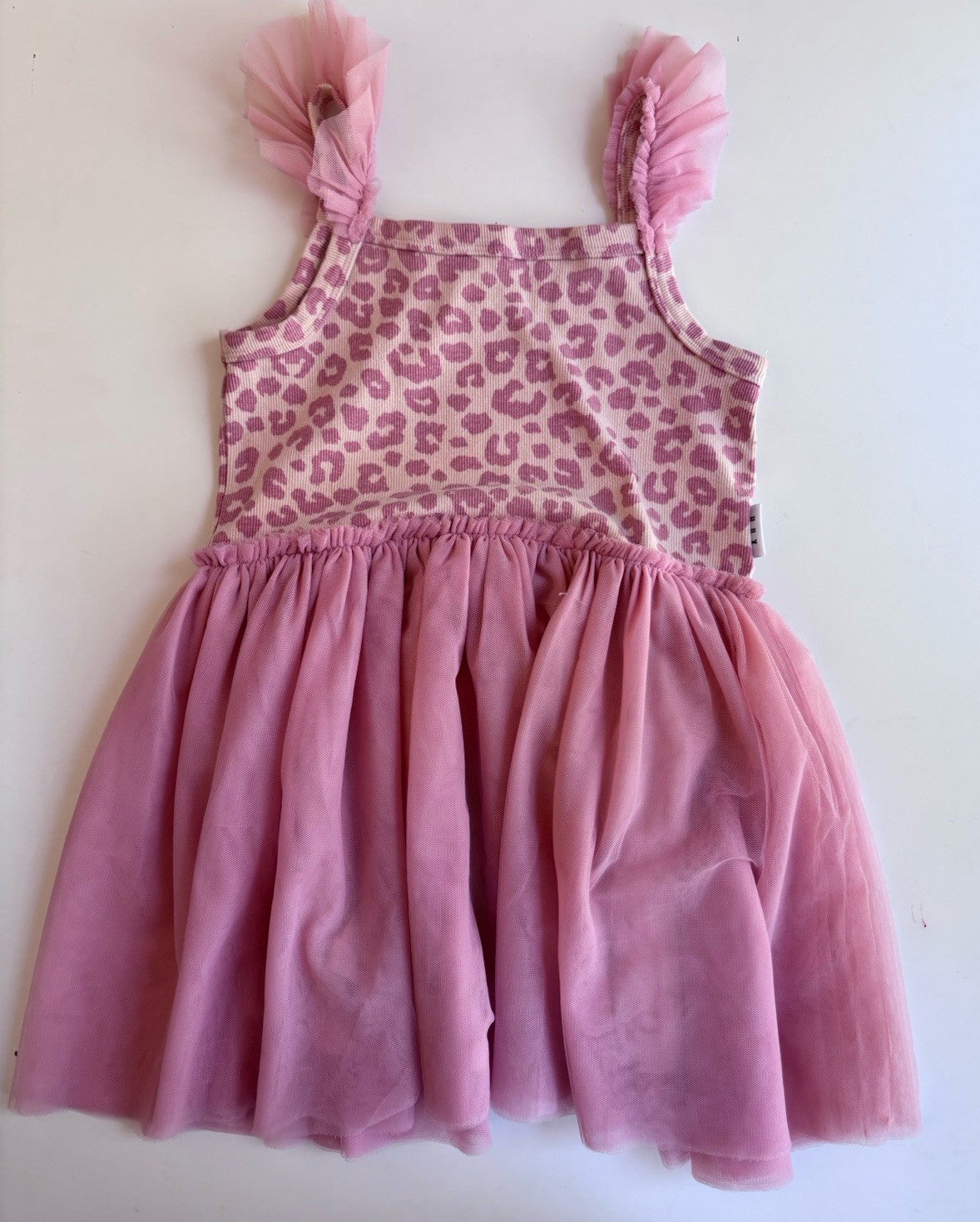 Hux Kids girls size 7 pink leopard print tutu tank dress, VGUC