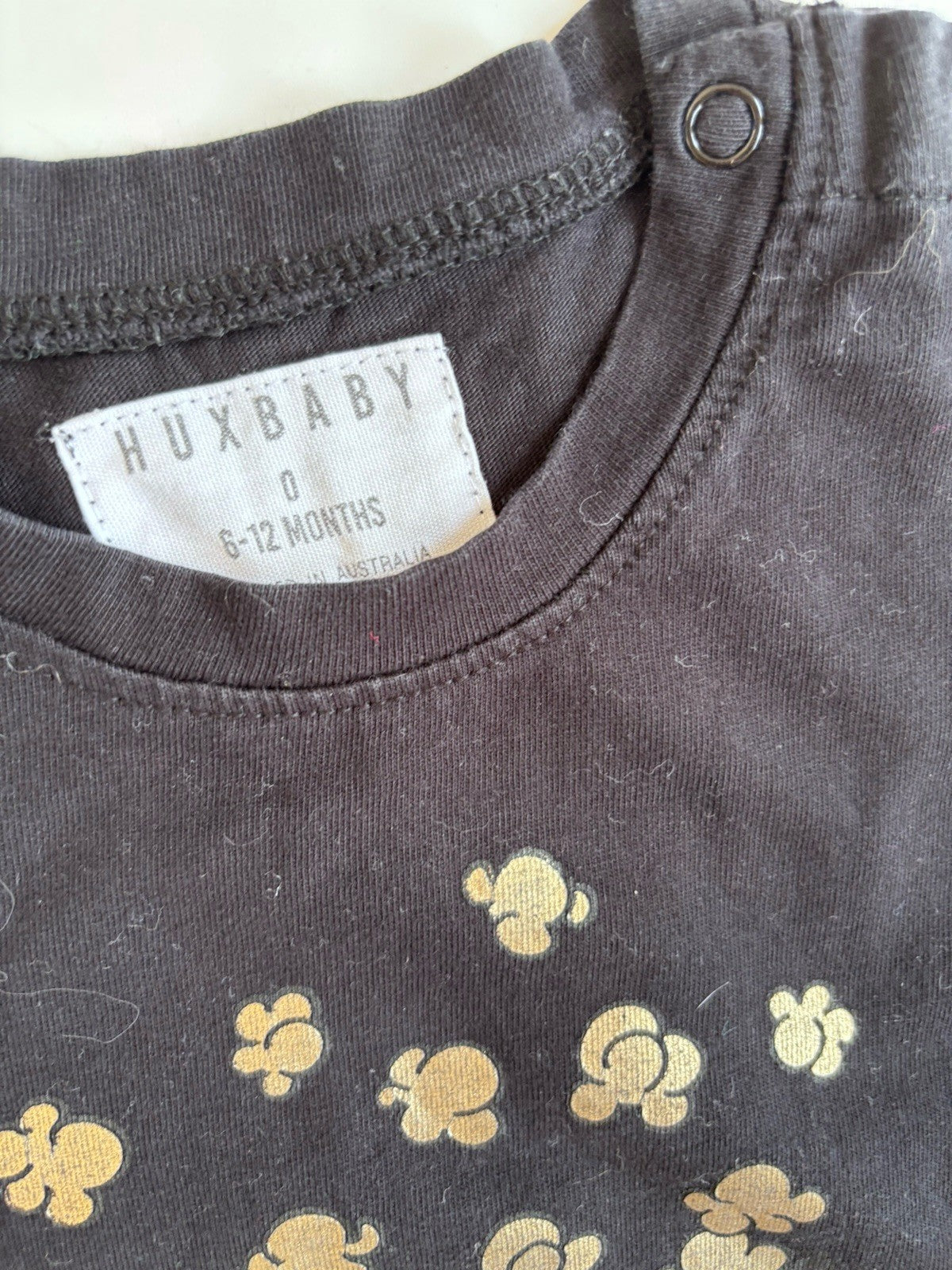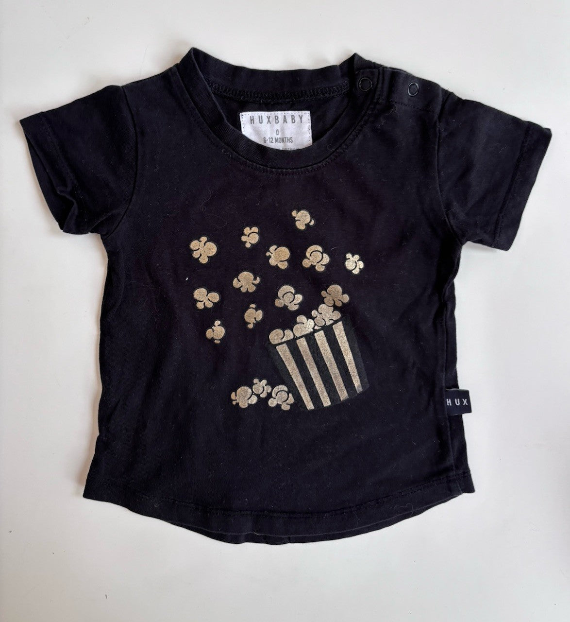 Huxbaby baby size 6-12 months black gold popcorn t-shirt top, VGUC