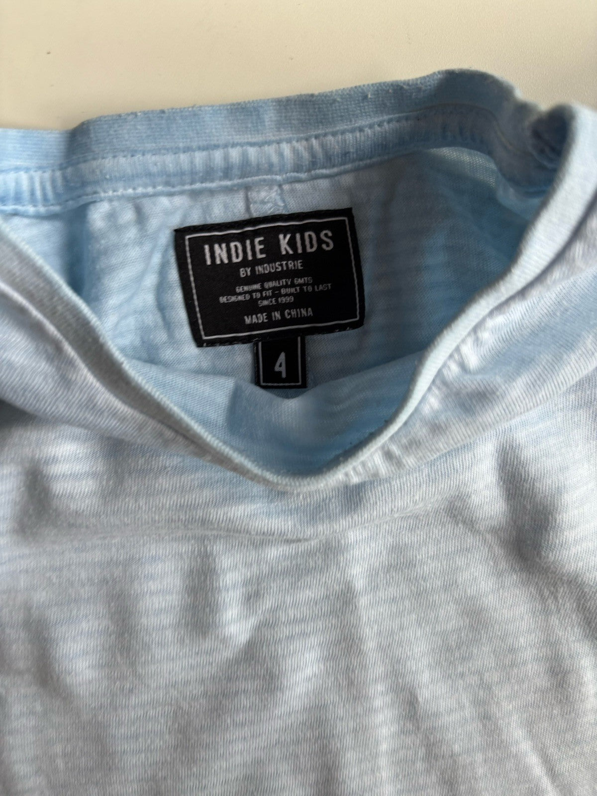 Indie Kids boys size 4 blue stripe short sleeve t-shirt, VGUC