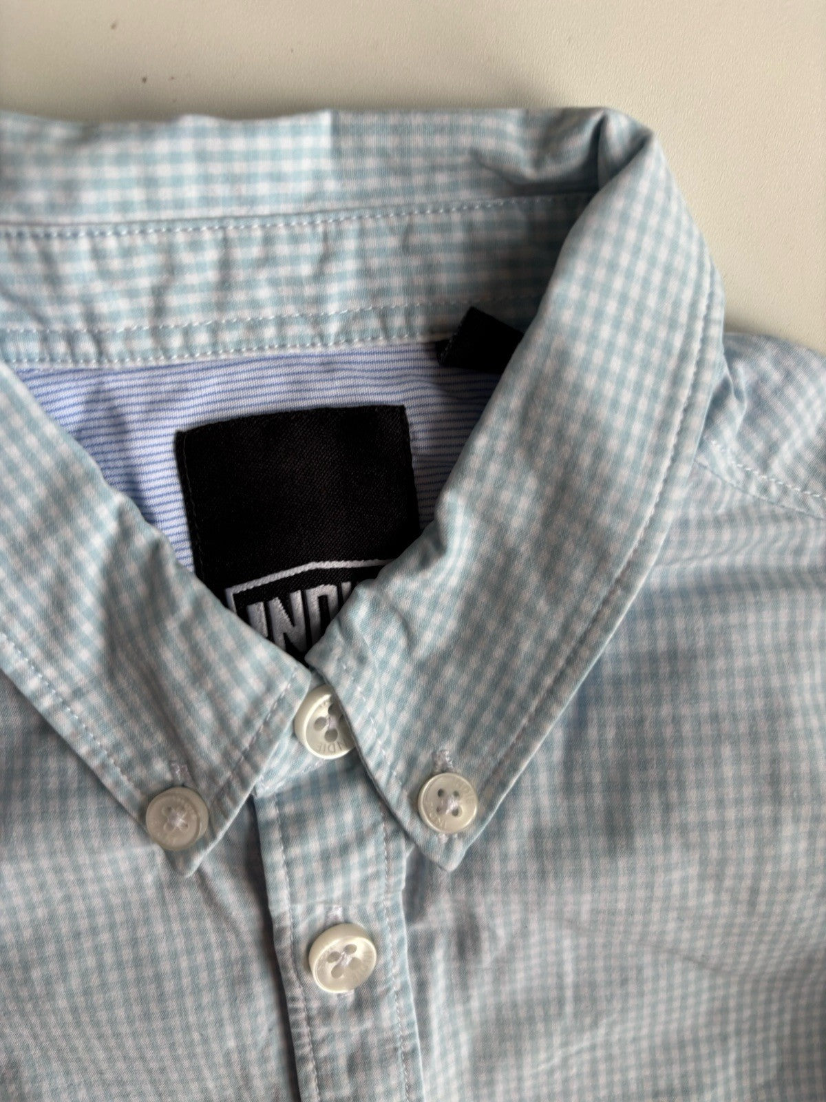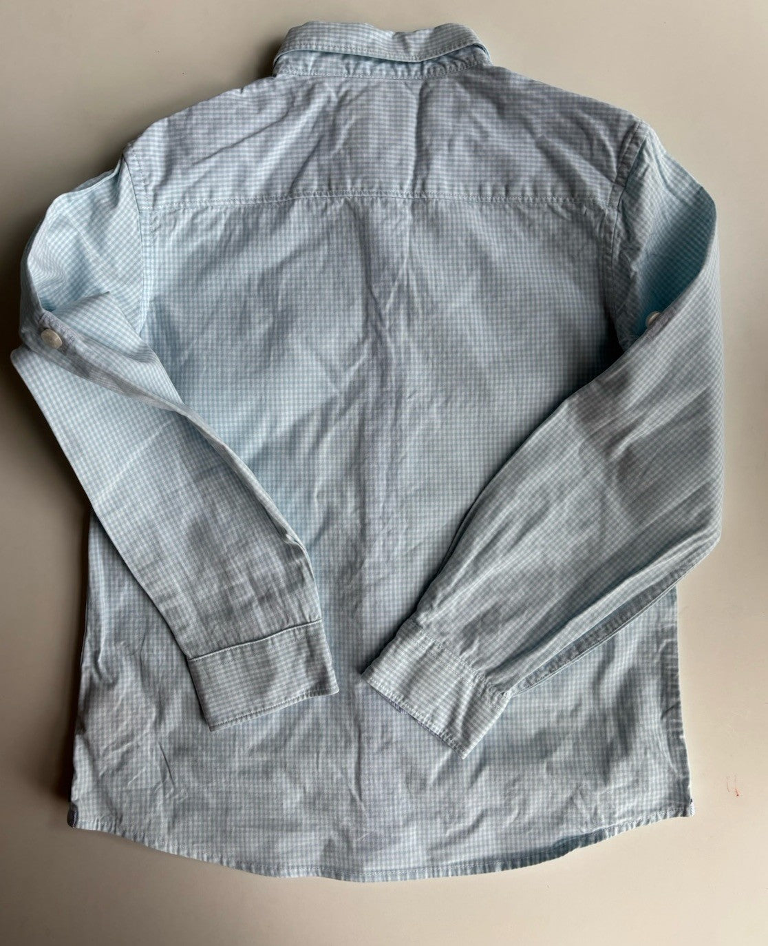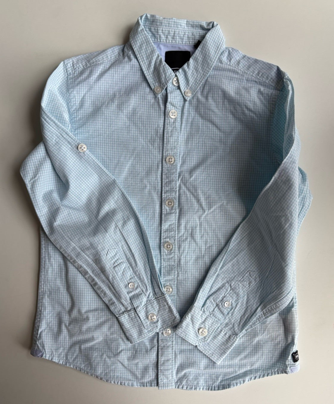 Indie kids boys size 6 light blue white gingham check shirt, VGUC