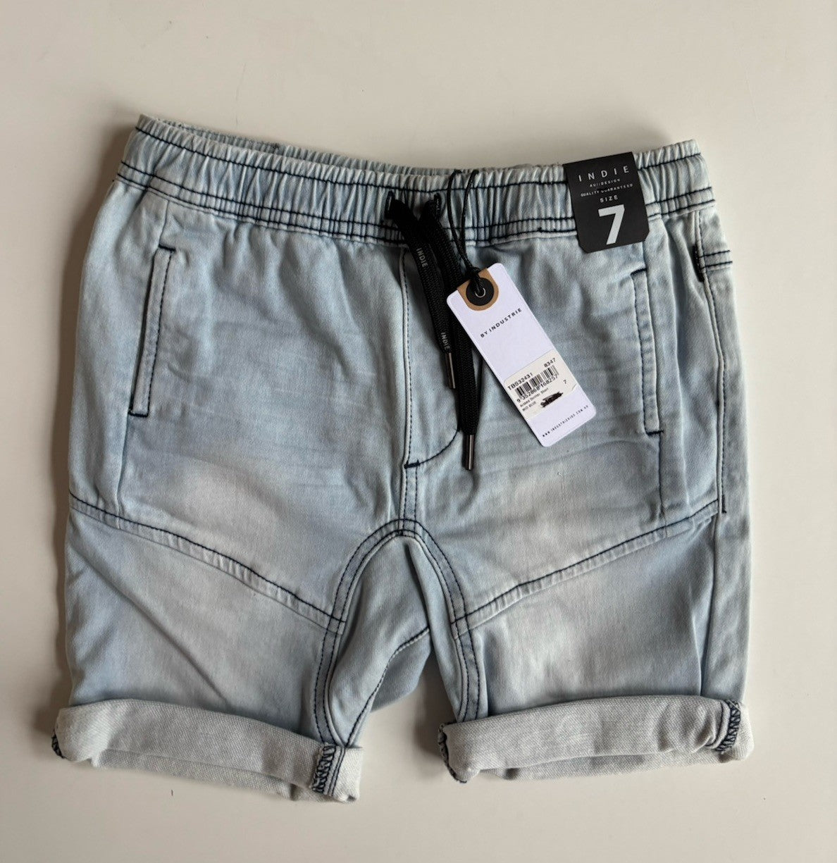 Indie Kids boys size 7 blue denim drawstring shorts, BNWT