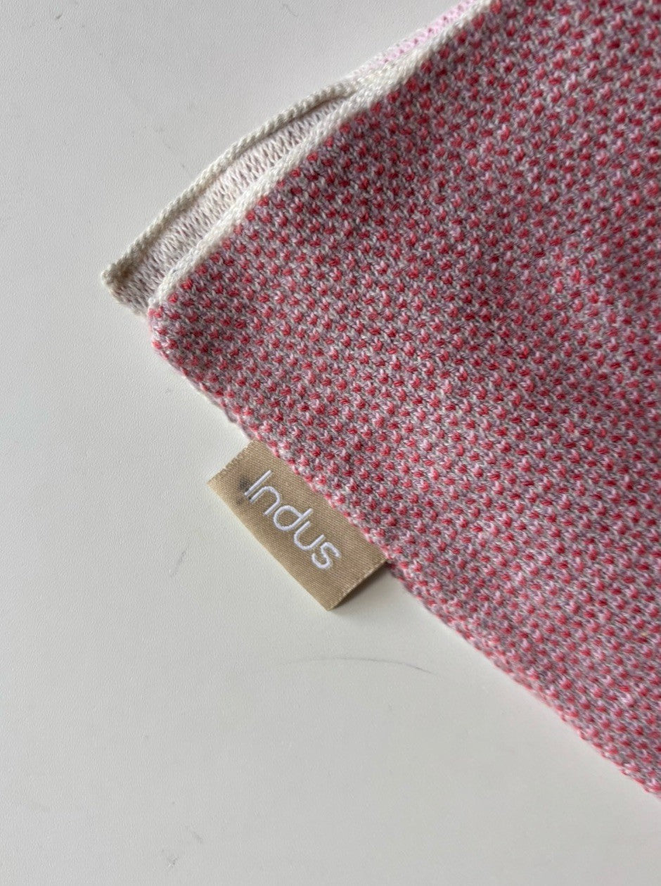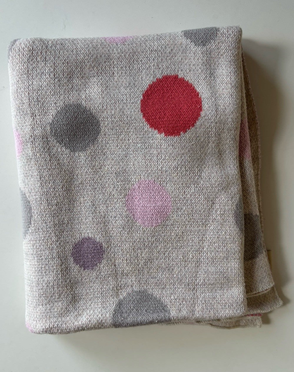 Indus baby girl beige pink purple spot cotton knit baby blanket, VGUC