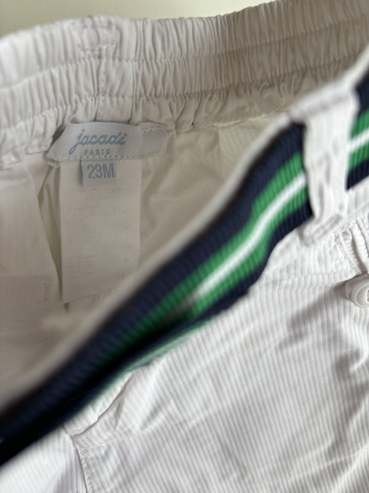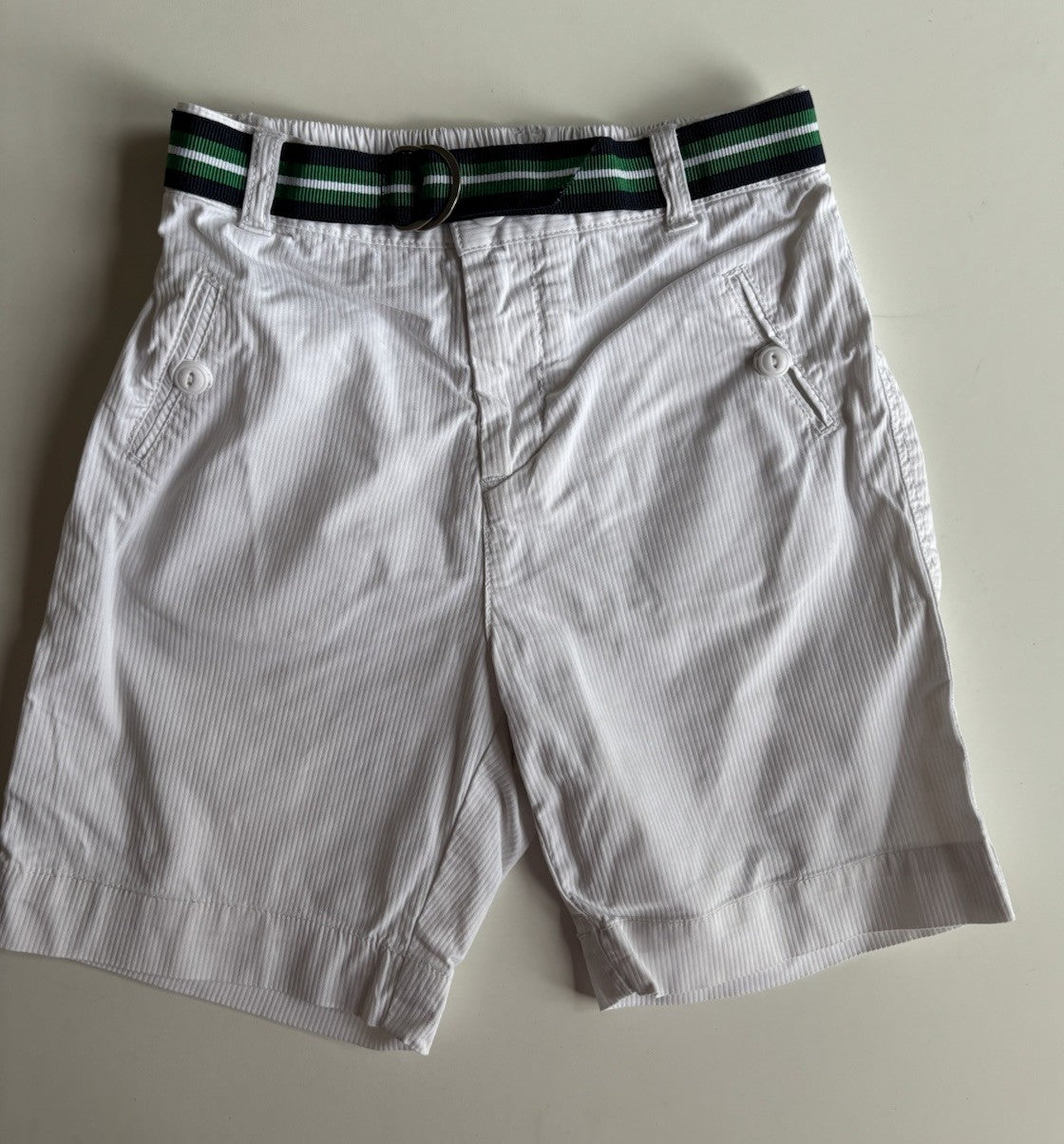 Jacadi baby boy size 18-24 months white ribbed belted shorts, VGUC