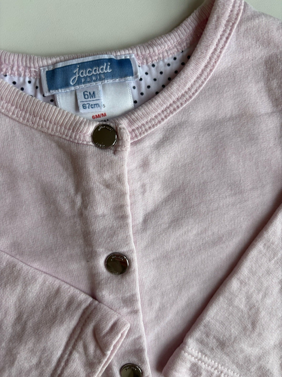 Jacadi Paris baby girl size 3-6 months pink button up cardigan, VGUC