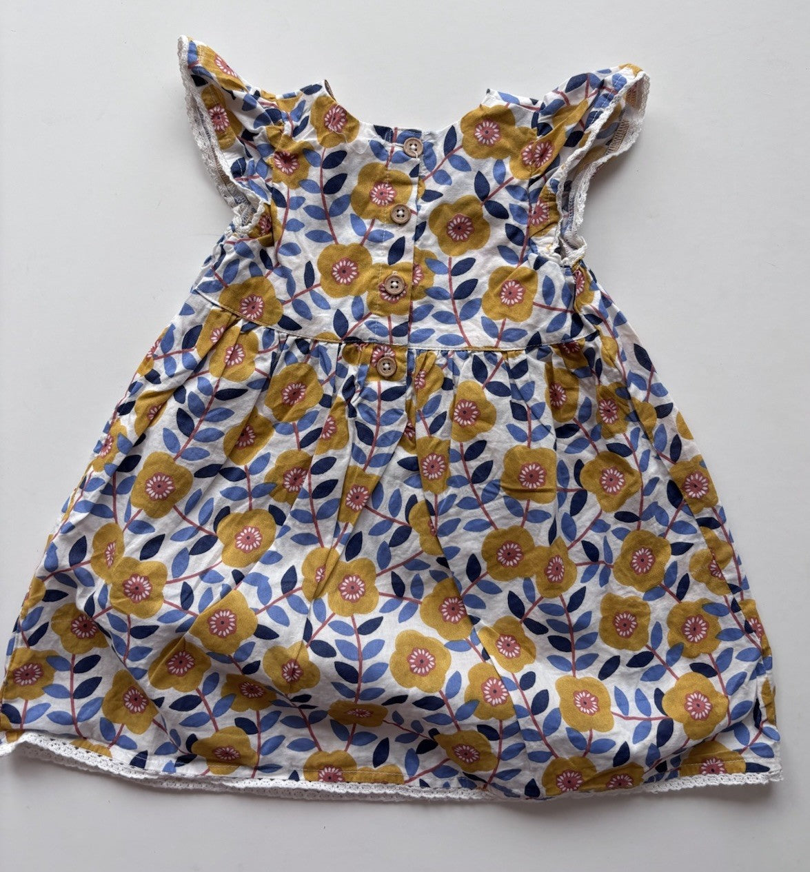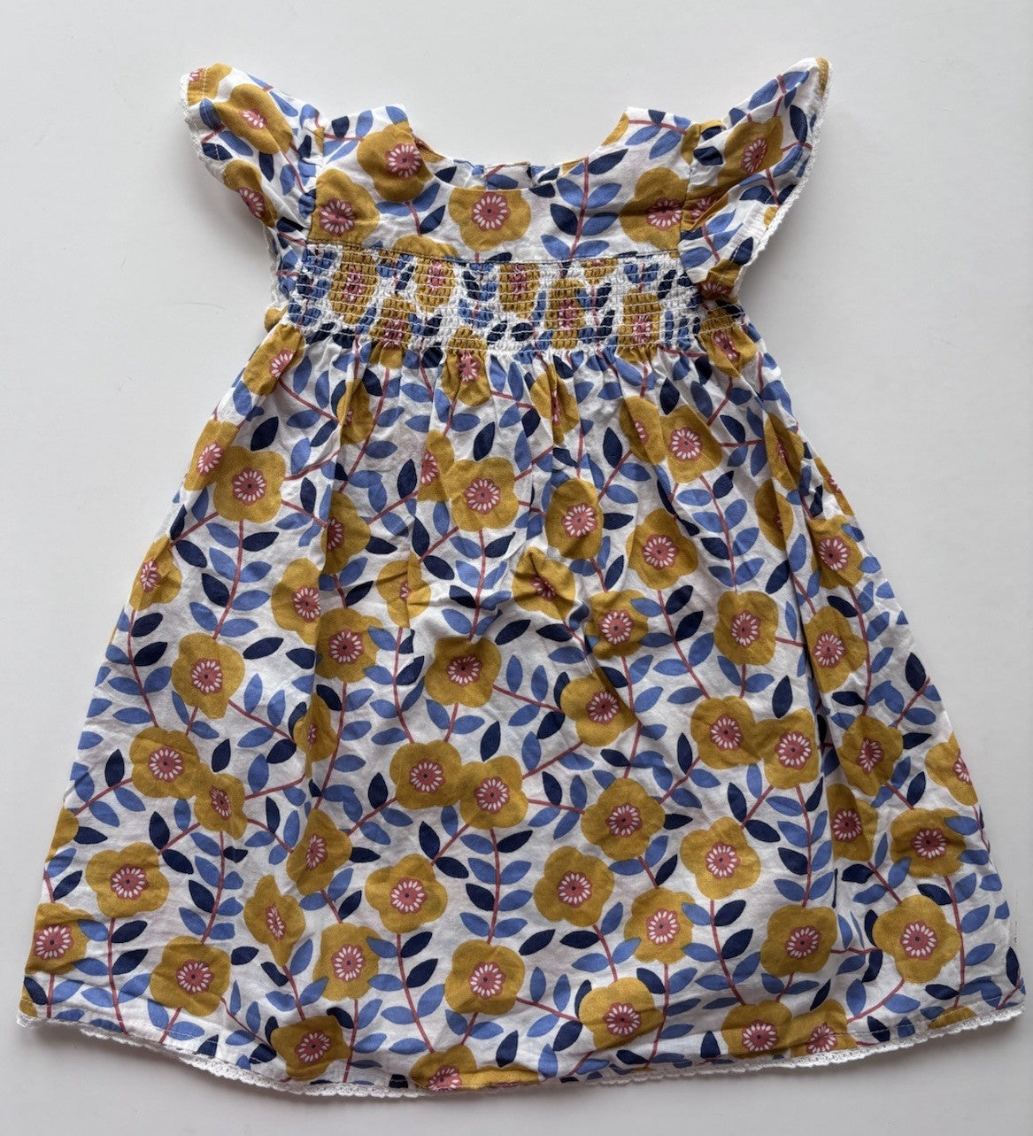 Jack & Milly baby girl size 12-18 months yellow blue floral smocked dress, VGUC