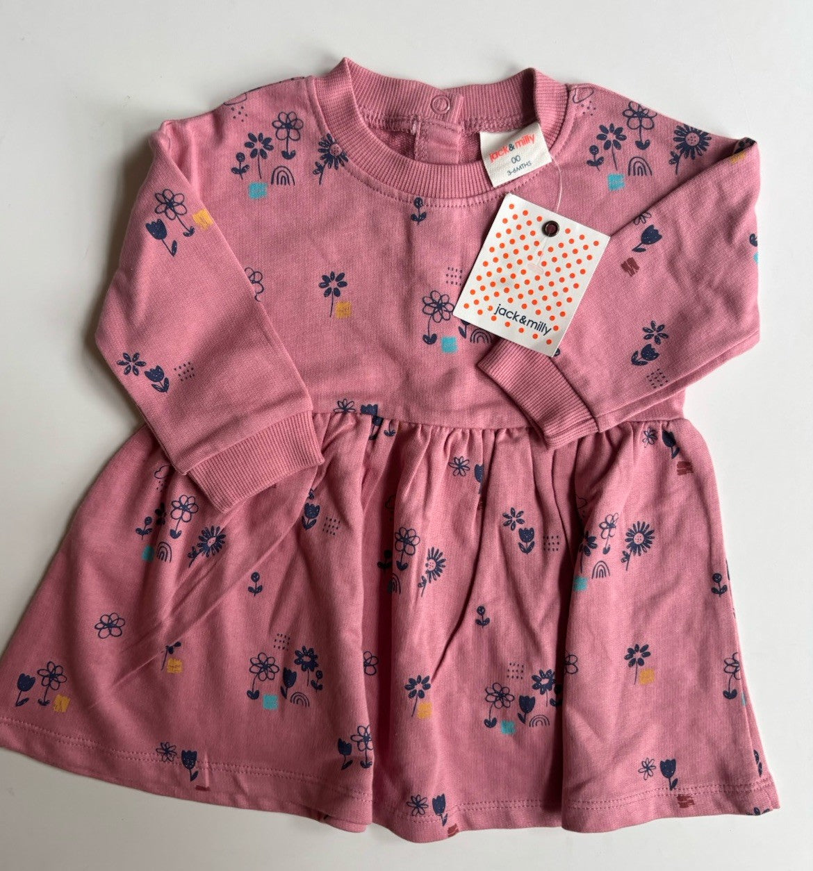 Jack & Milly baby girl size 3-6 months pink floral jumper dress, BNWT