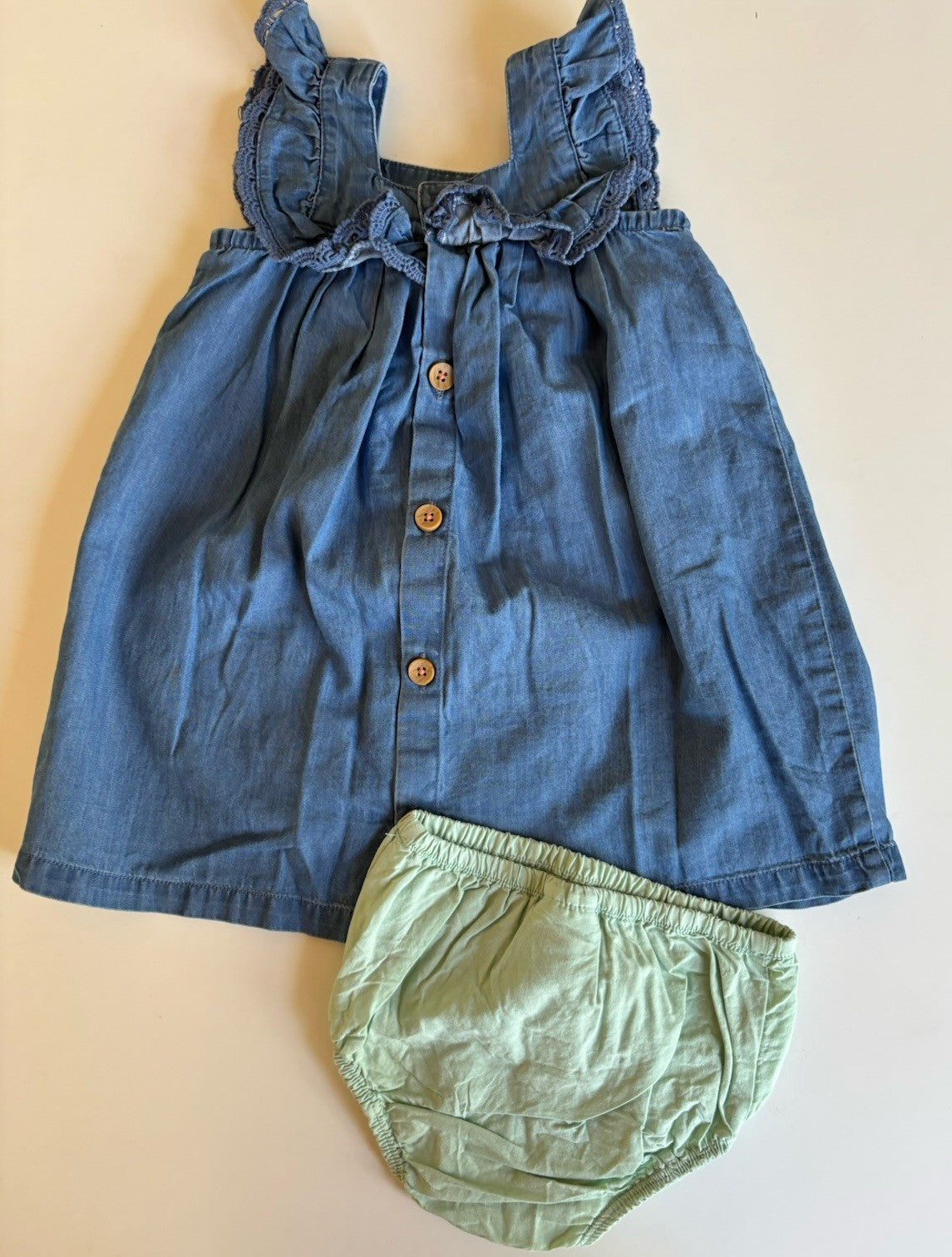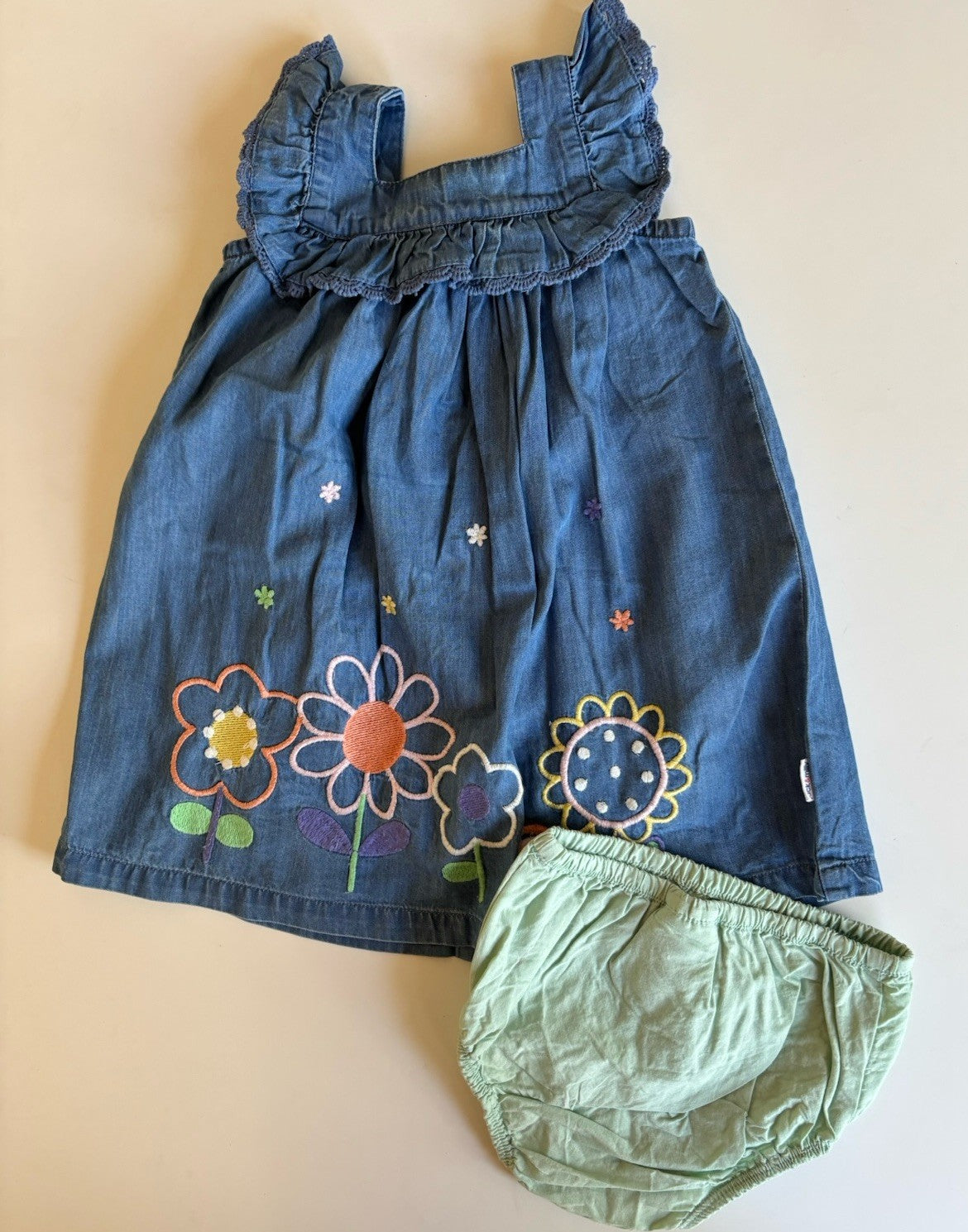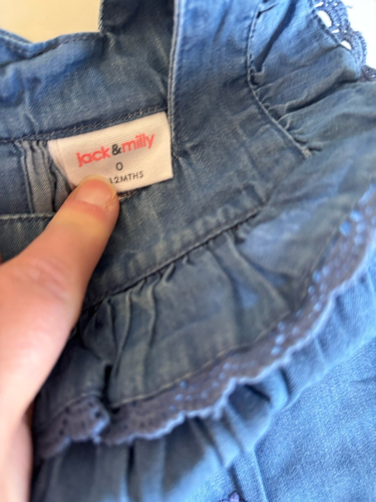 Jack & Milly baby girl size 6-12 months blue chambre denim dress flora