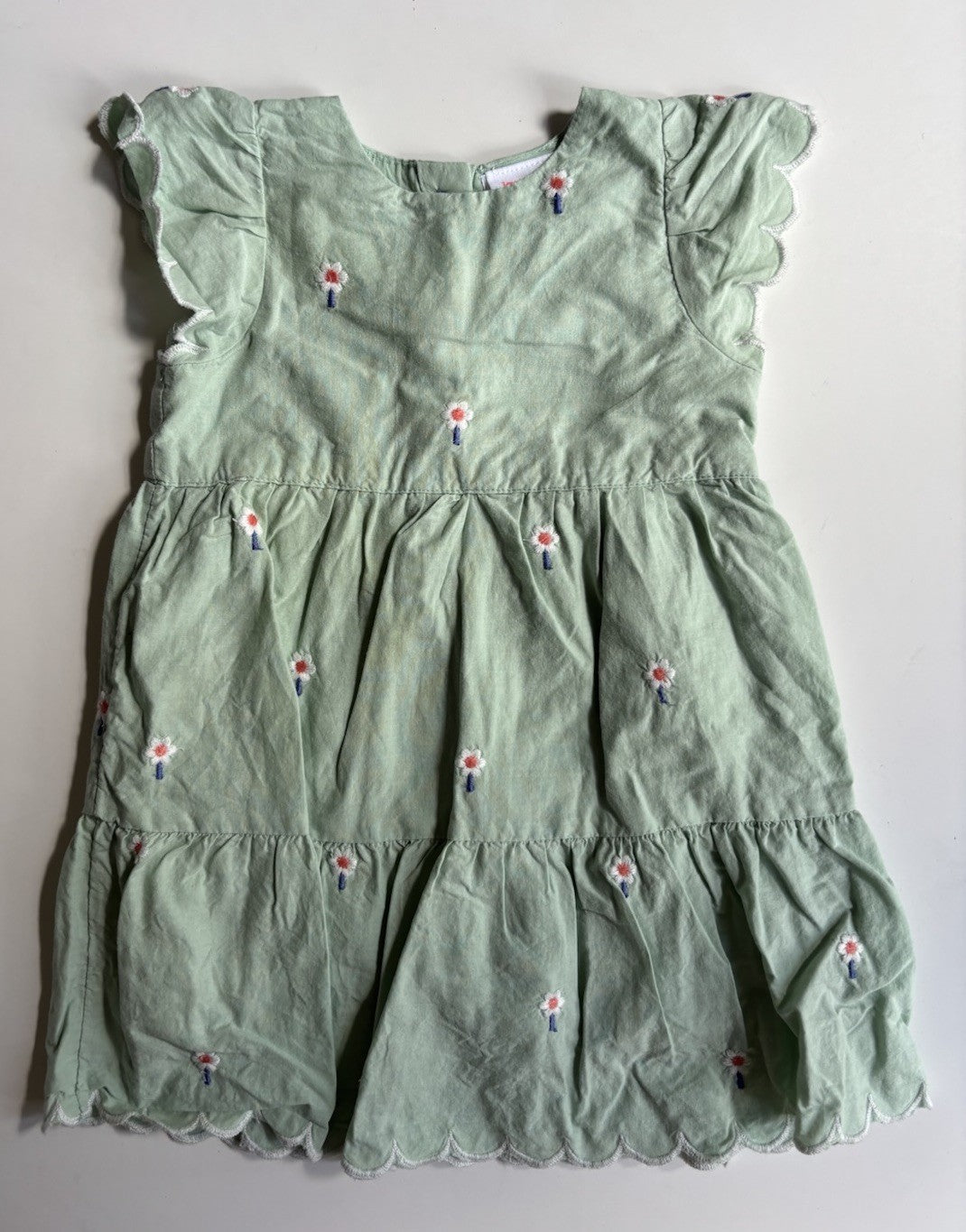 Jack & Milly baby girl size 6-12 months green embroidered floral dress, VGUC
