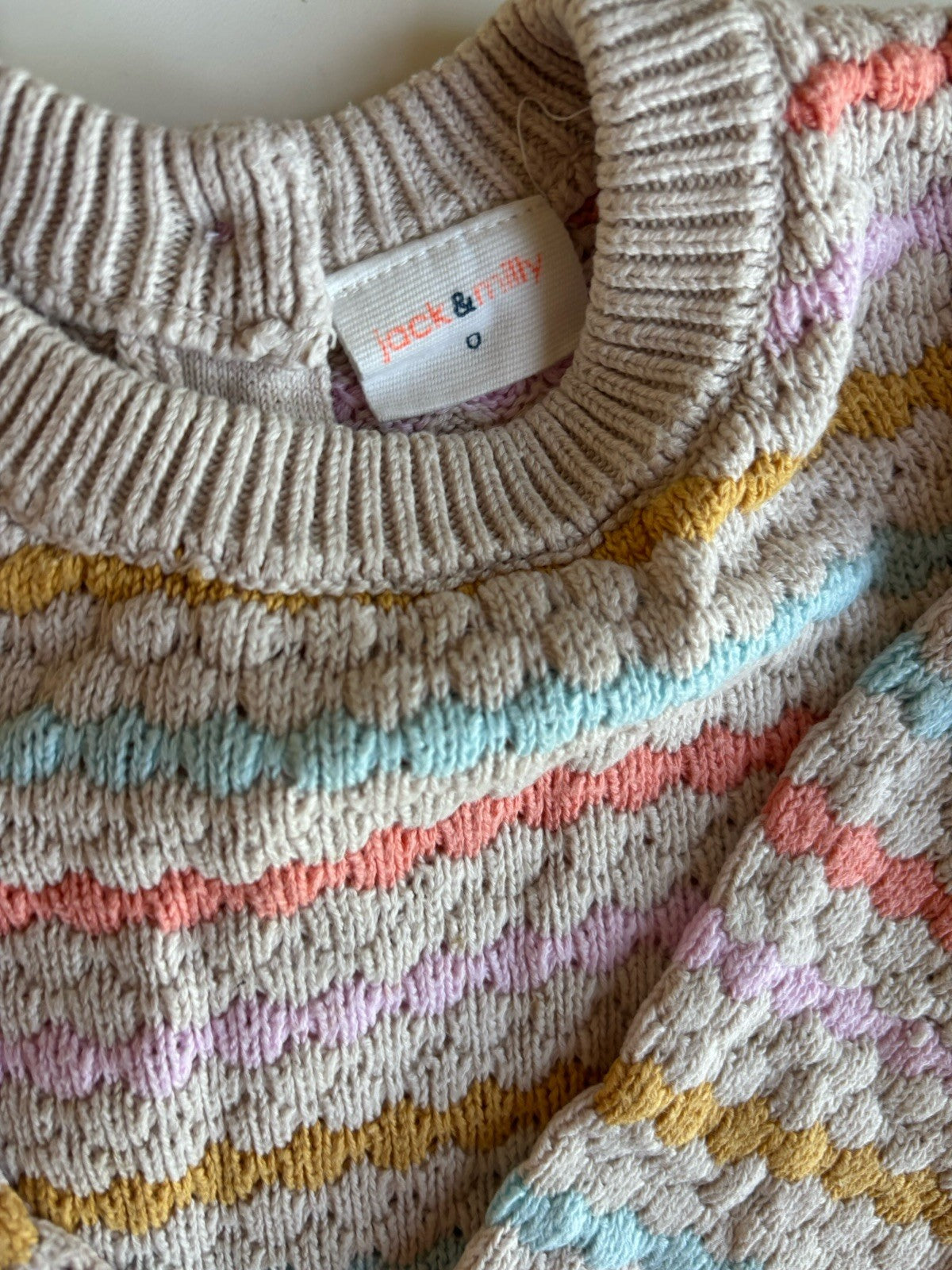 Jack & Milly baby girl size 6-12 months knitted colourful stripe dress, VGUC
