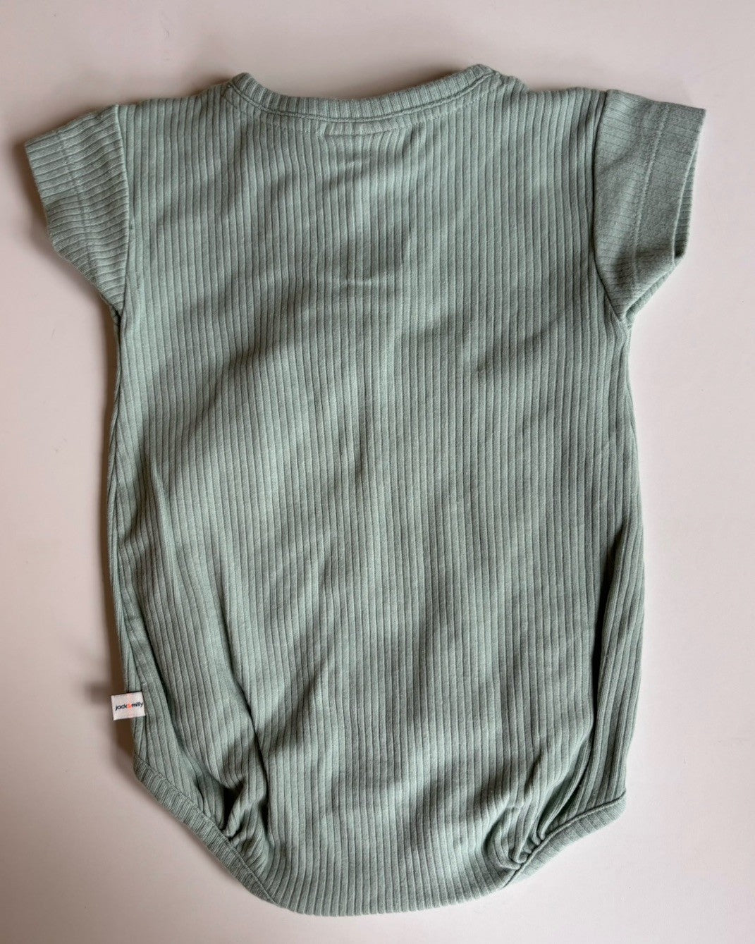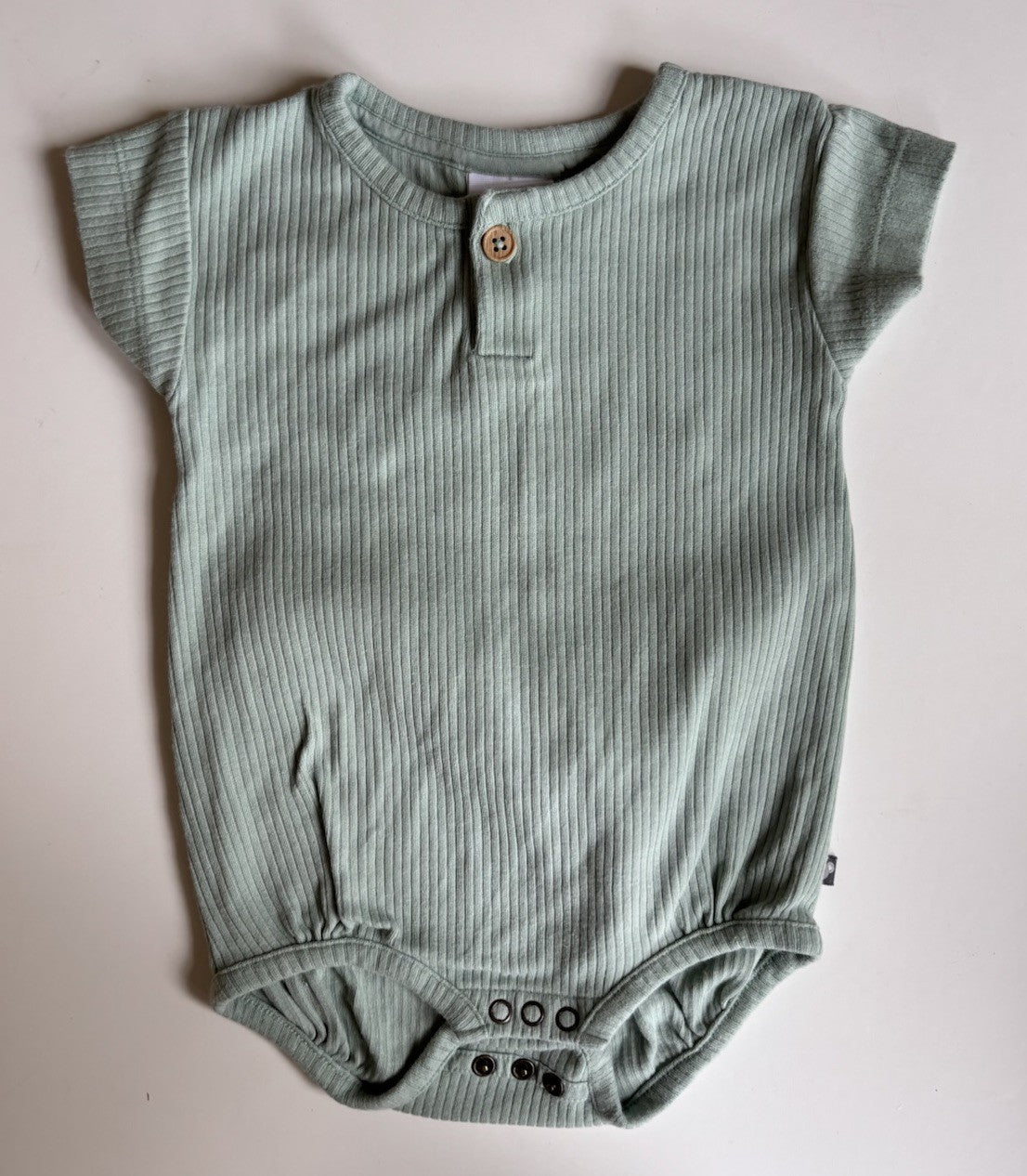 Jack & Milly baby size 6-12 months sage green ribbed bodysuit top, VGUC