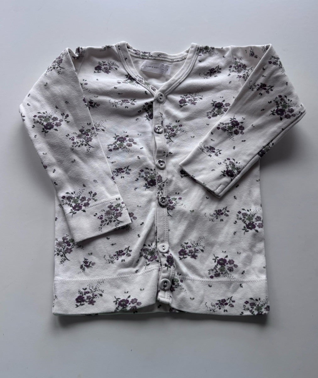 Jamie Kay baby girl size 12-18 months purple floral button up top, VGUC