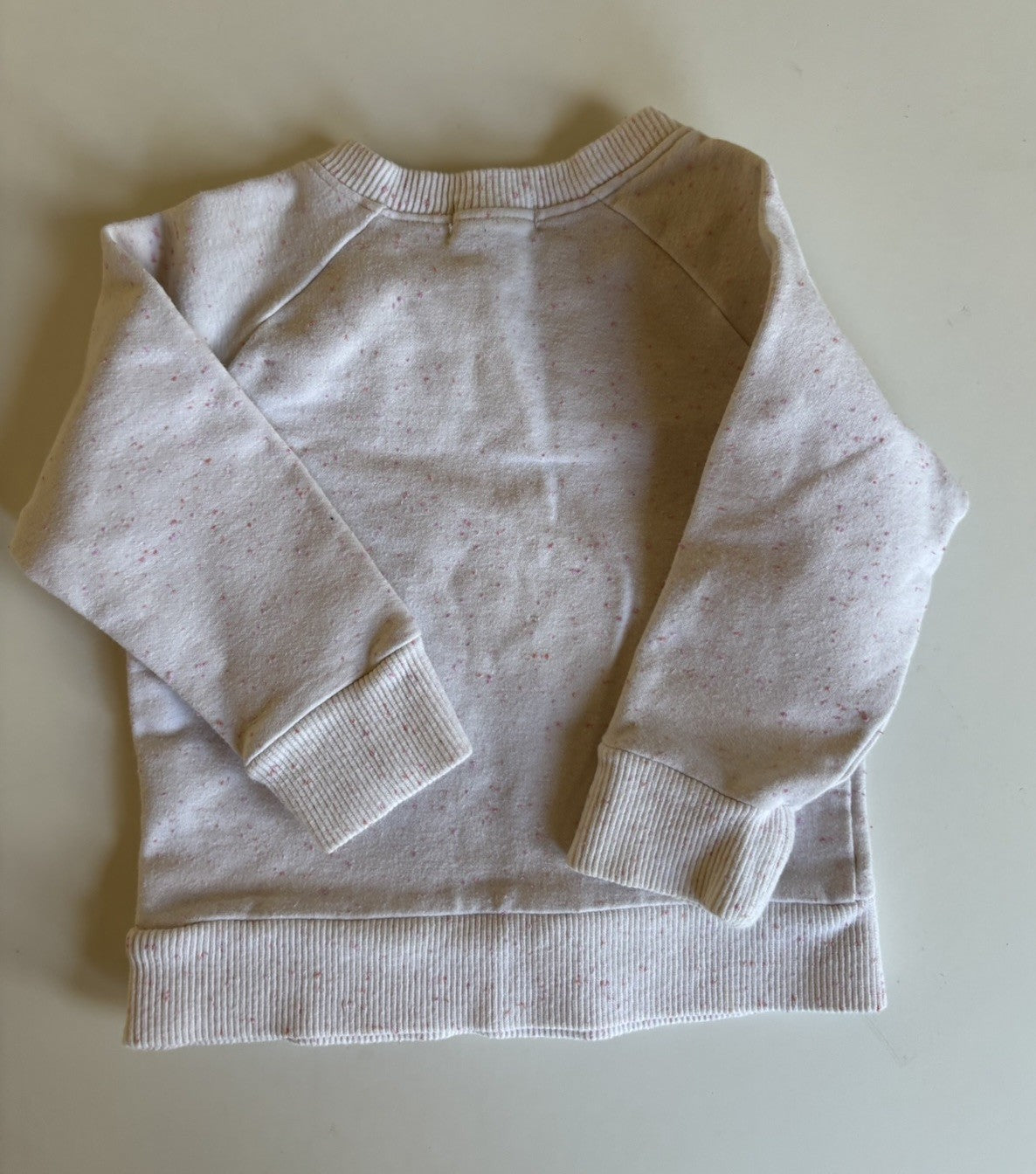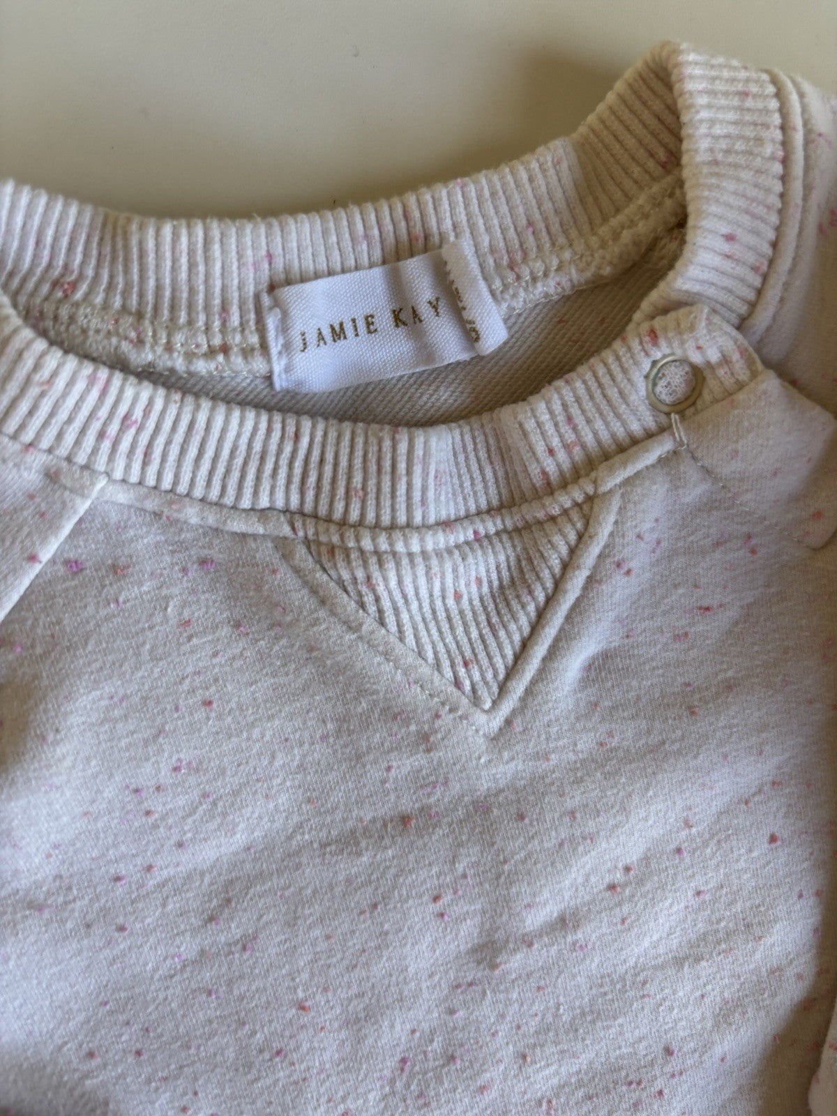 Jamie Kay baby girl size 6-12 months white pink speckled jumper, VGUC