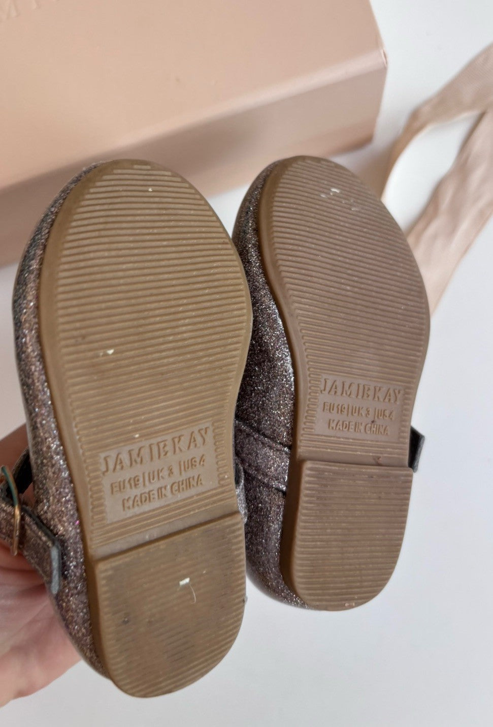 Jamie Kay kids girls toddler size EUR 19/US 4 gold glitter Mary Jane shoes, EUC