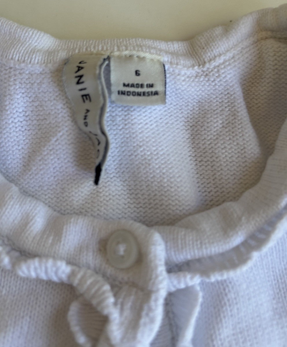 Janie and Jack kids girls size 6 white knitted button up cardigan jumper, GUC