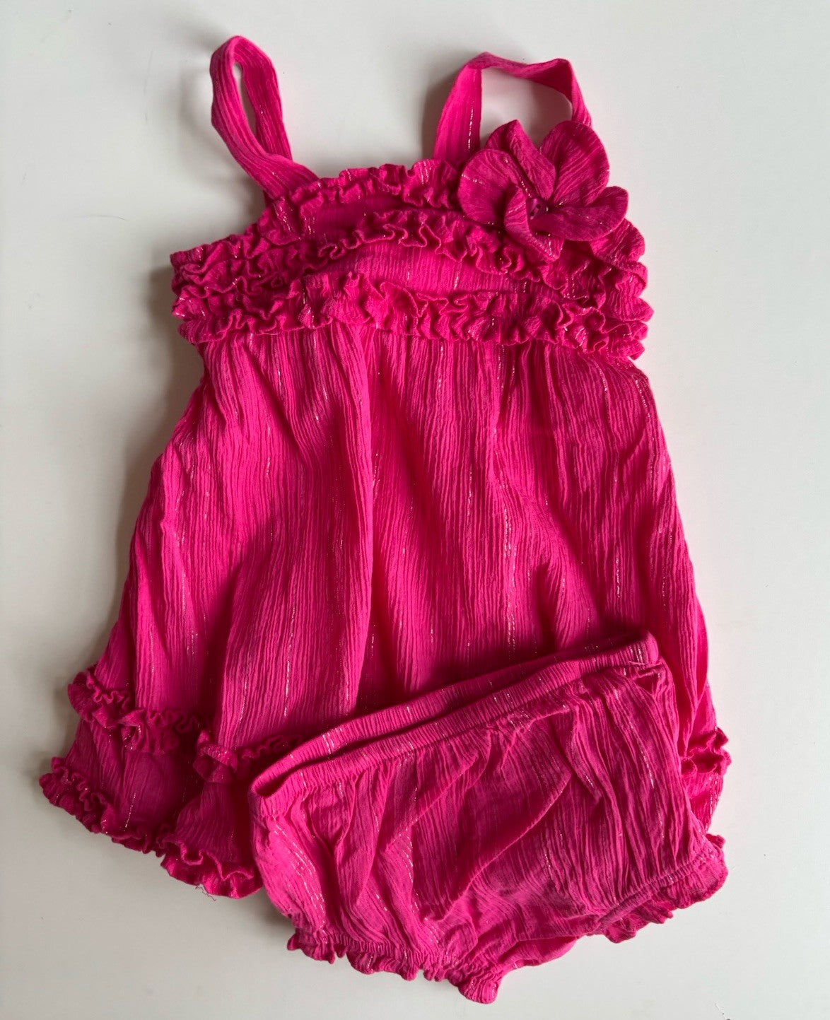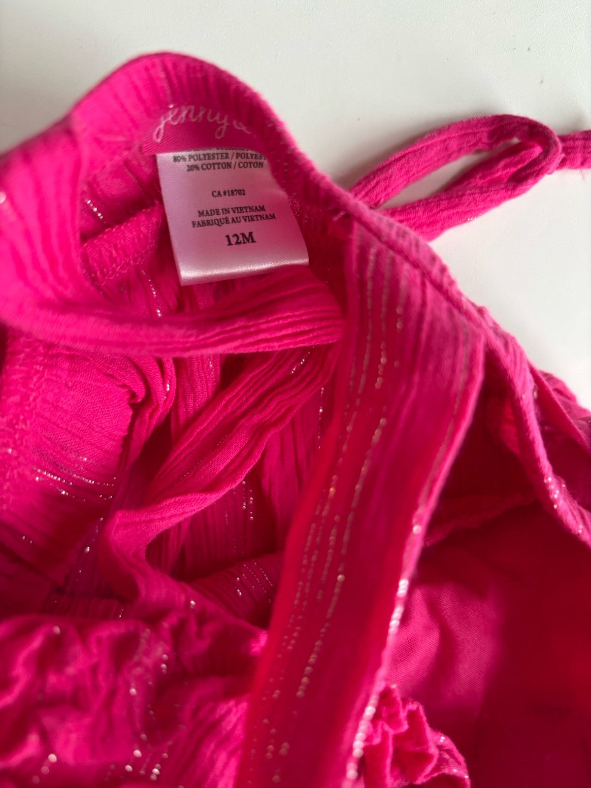 Jenny & Me baby girl size 9-12 months pink silver stripe dress ruffles, VGUC