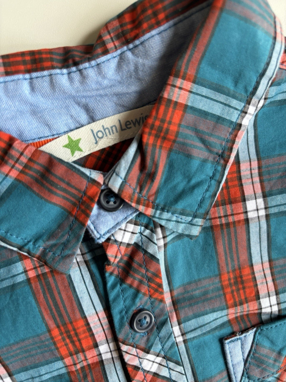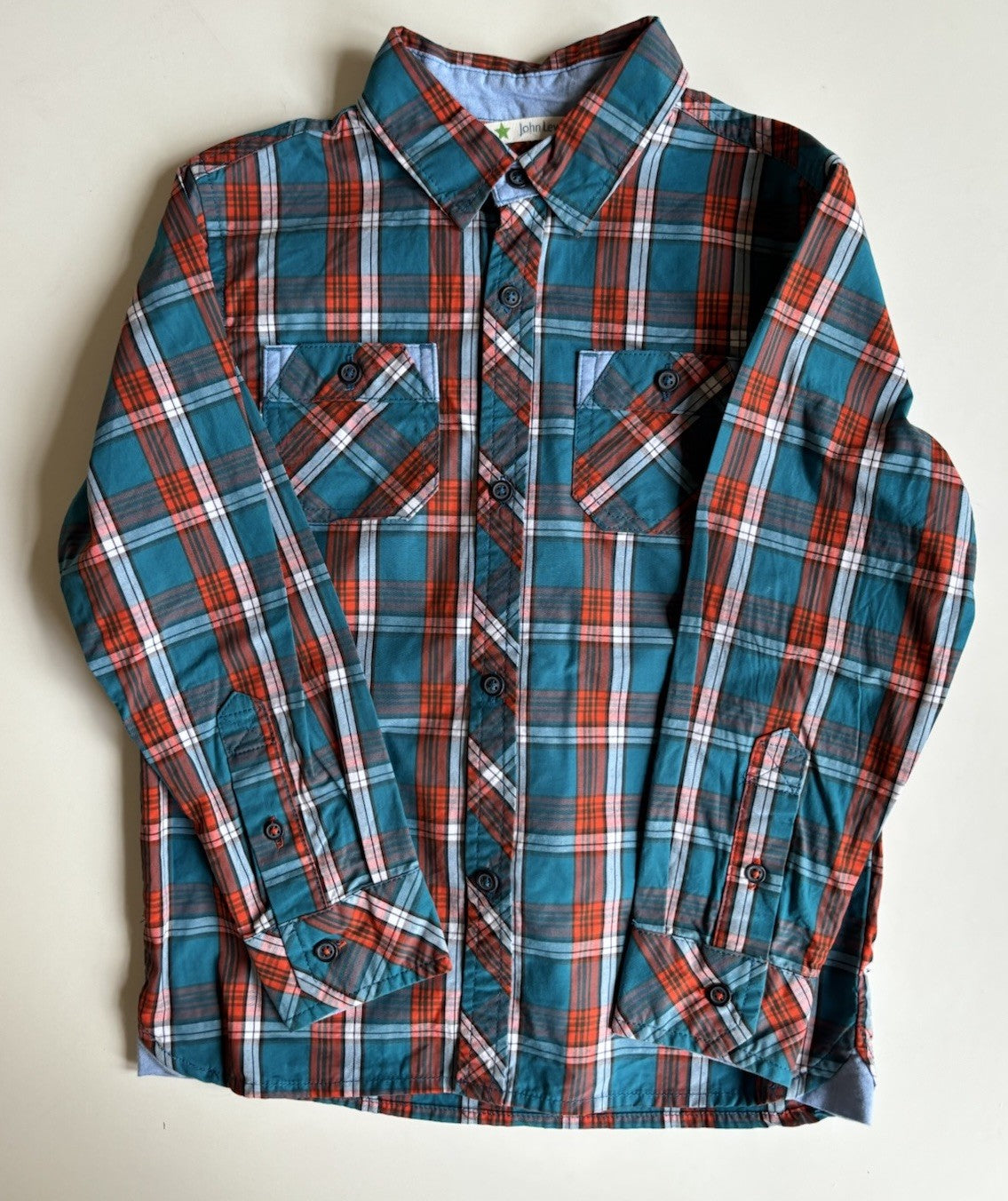 John Lewis kids boys size 5 years blue red check button up shirt, VGUC