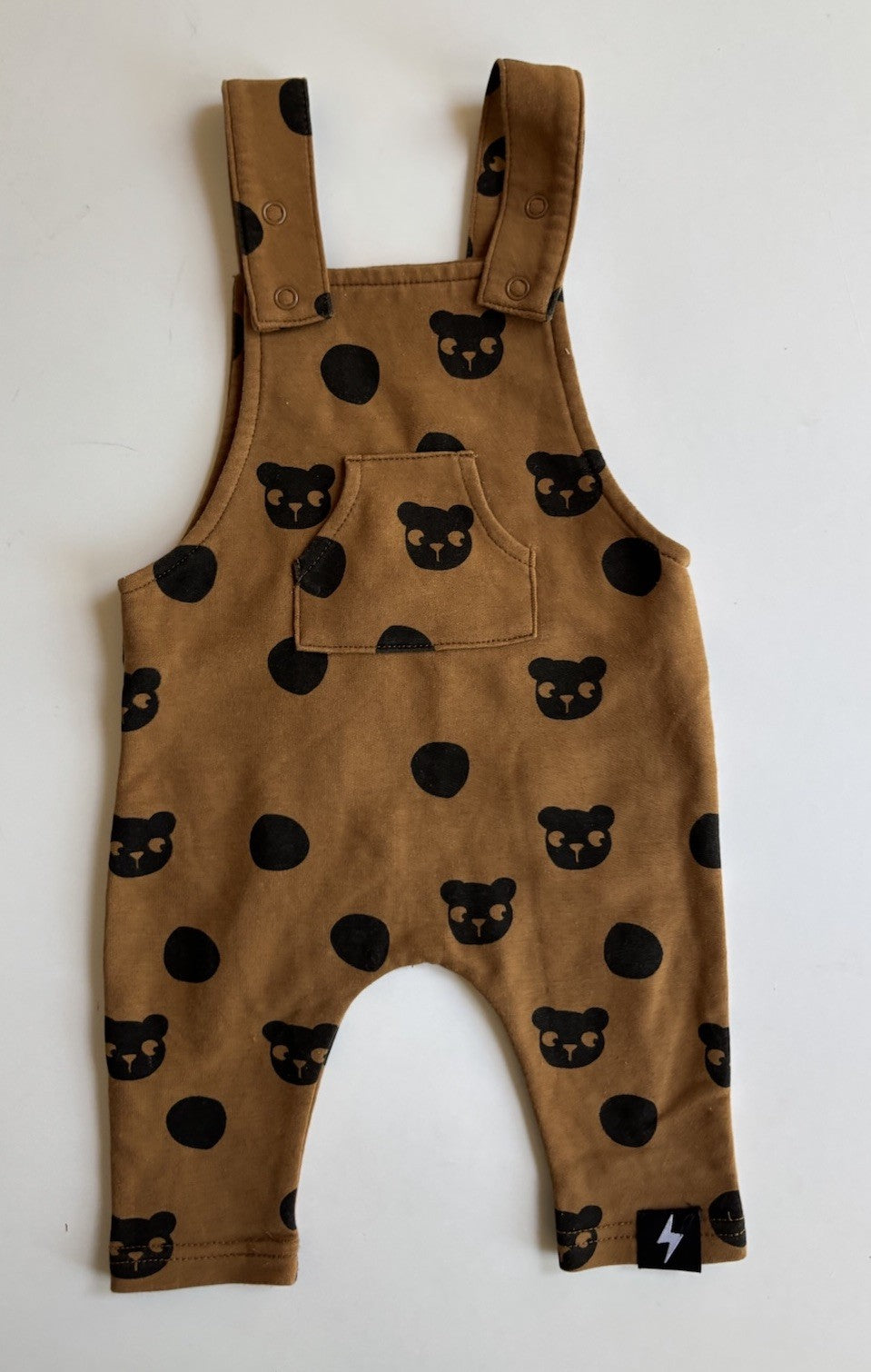 Kapow Kids baby boy size 0-3 months brown black bears one-piece, EUC