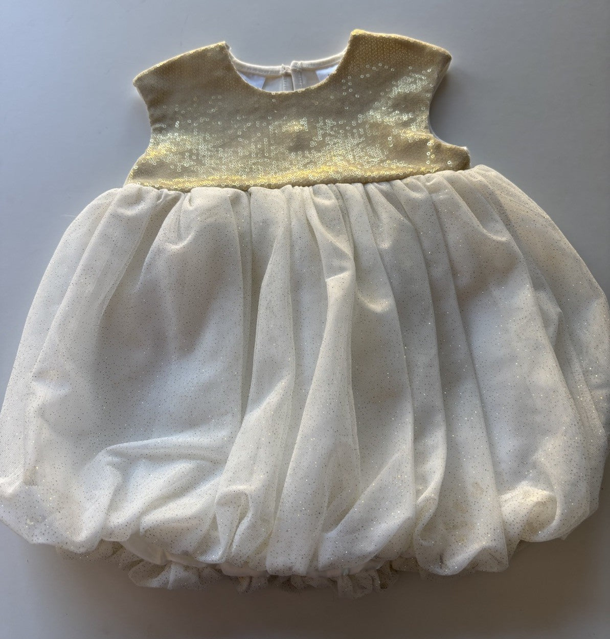 Kardashian Kids baby girl size 6-12 months white gold sequin bubble dress, VGUC