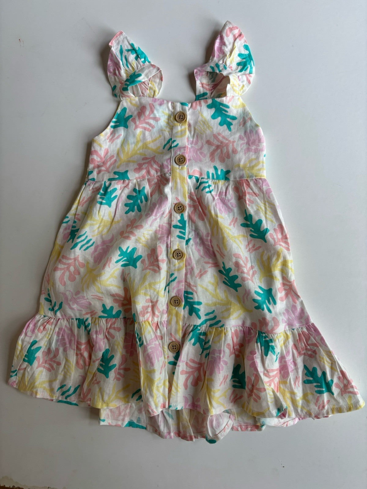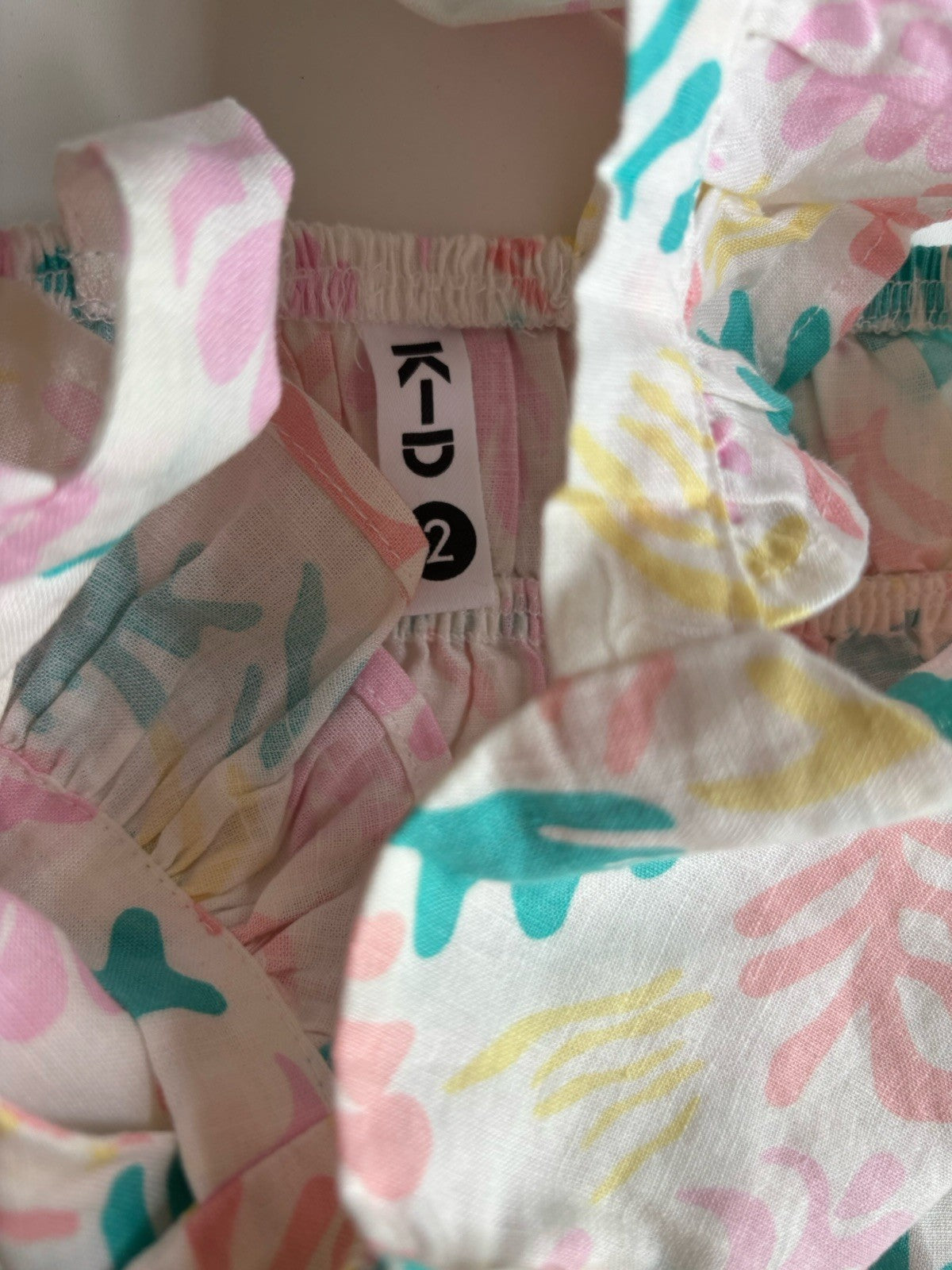 KID kids girls toddler size 2 white colourful ferns summer dress, VGUC