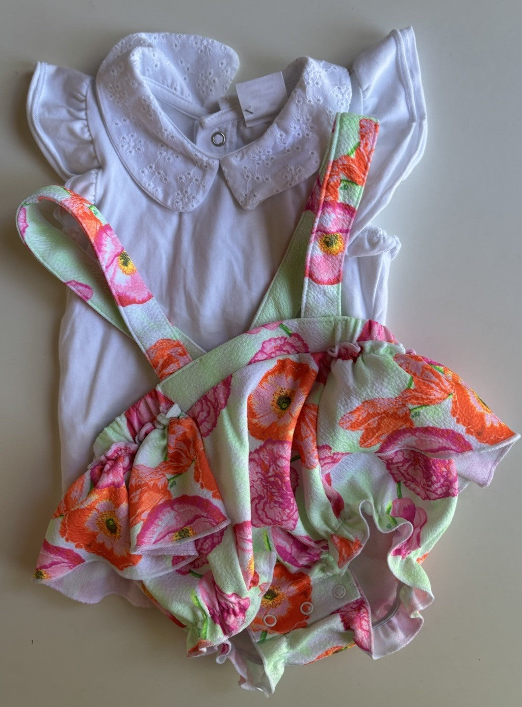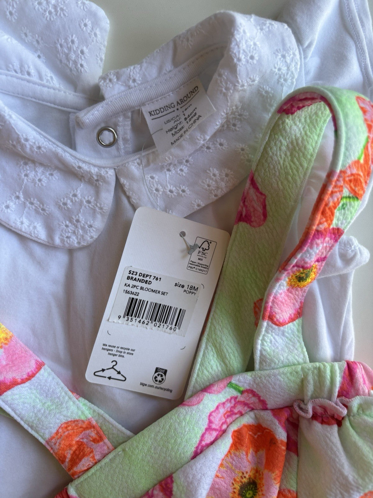 Kidding Around baby girl size 12-18 months white top floral romper set, BNWT