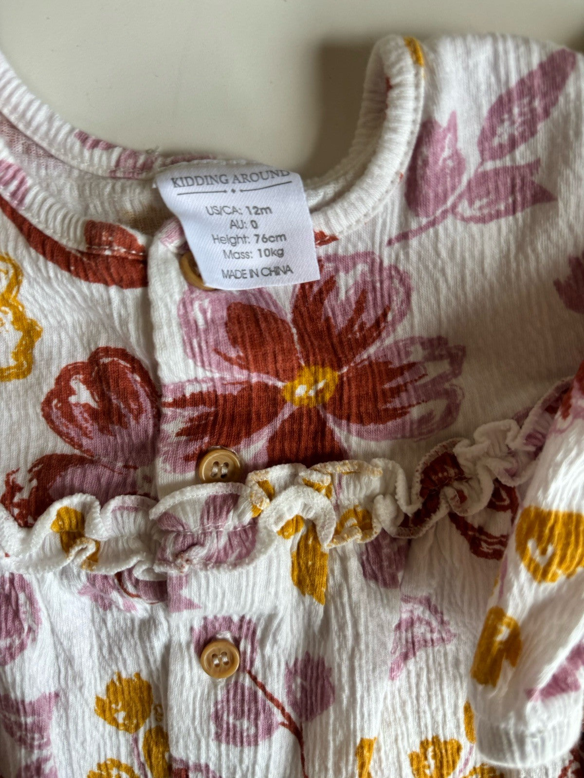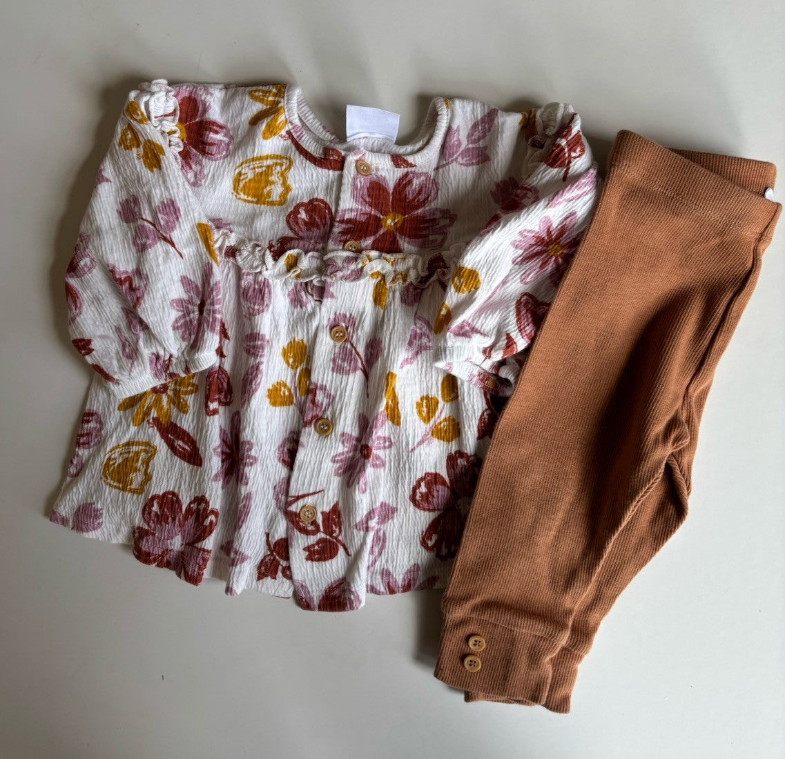 Kidding Around baby girl size 6-12 months brown leggings floral top set, VGUC