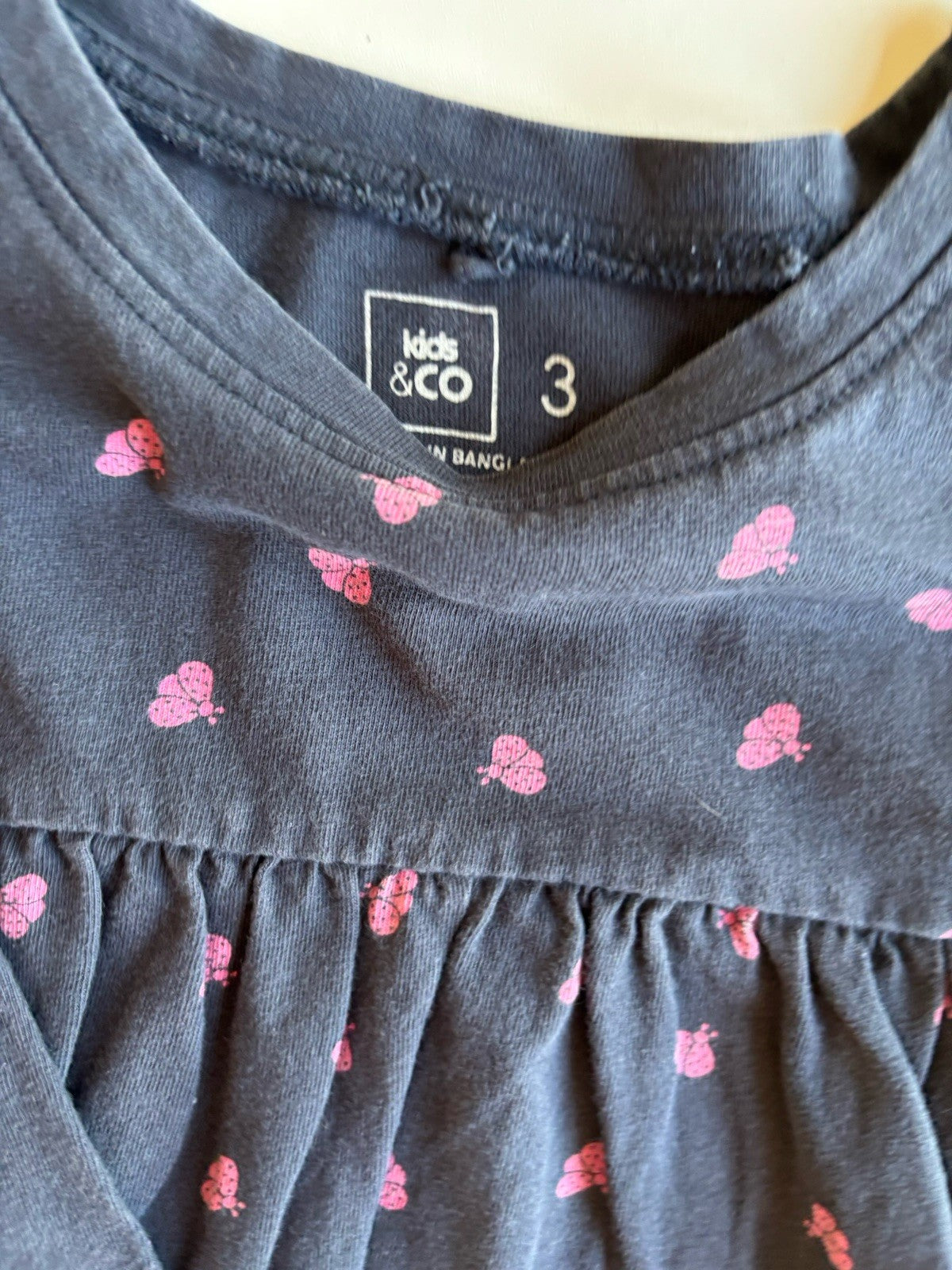 Kids & Co. kids girl toddler size 3 navy blue pink ladybirds dress, VGUC