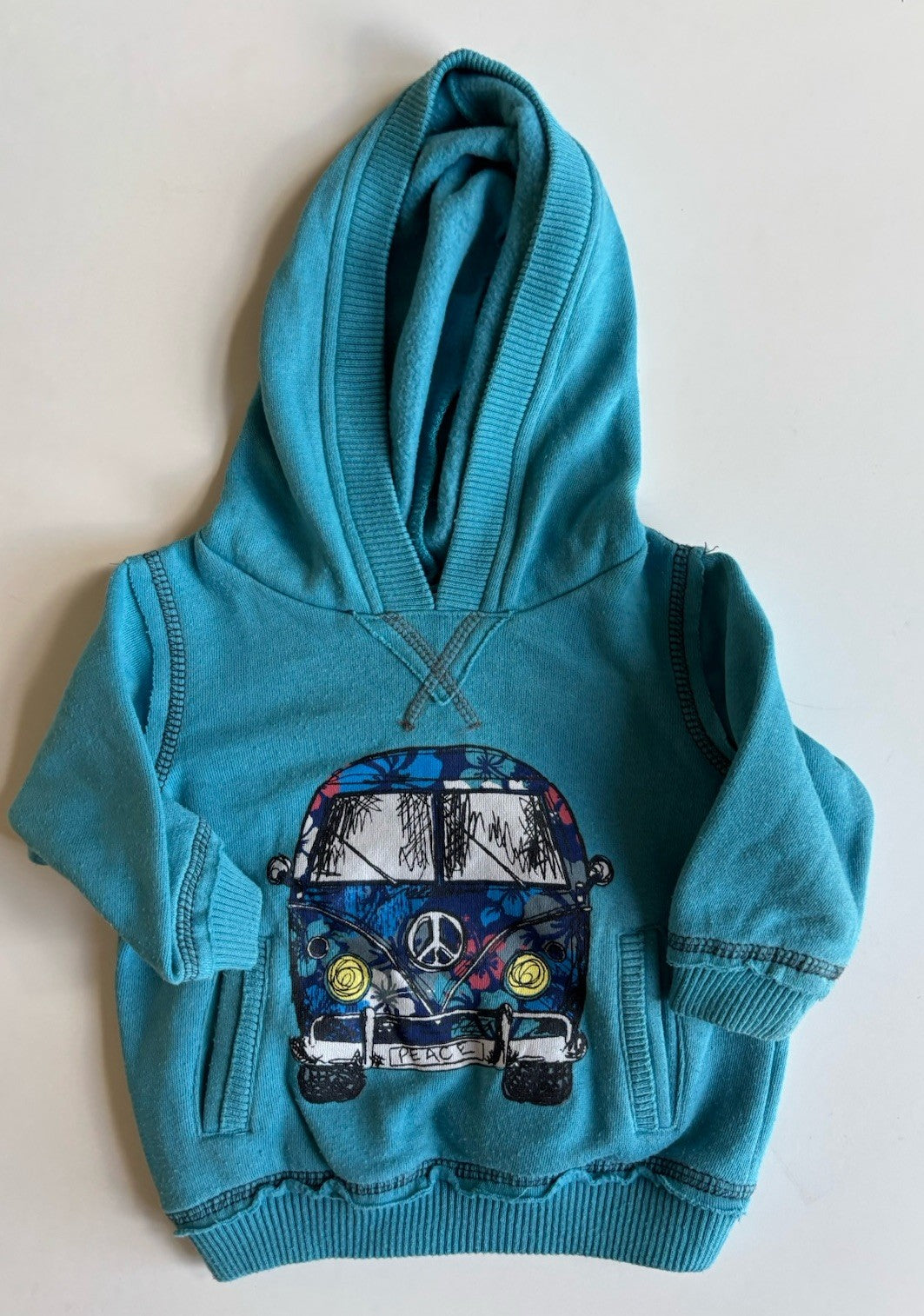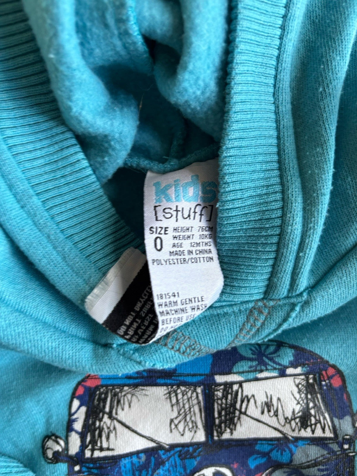 Kids Stuff baby size 6-12 months blue hooded jumper kombi van, VGUC