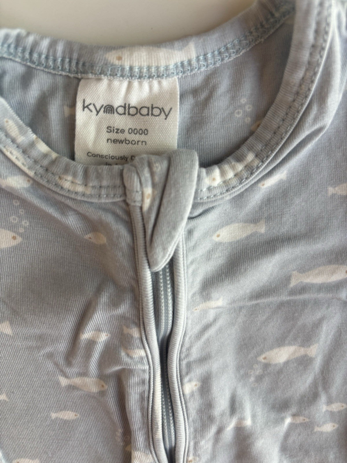 Kynd Baby baby size newborn blue fish romper one-piece viscose, VGUC